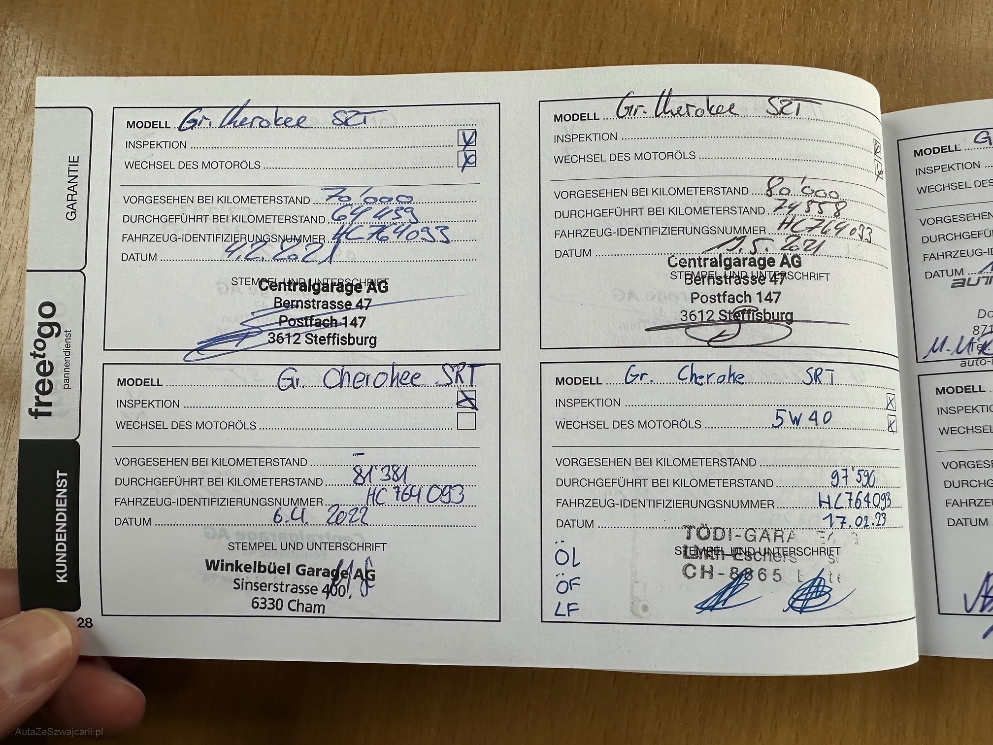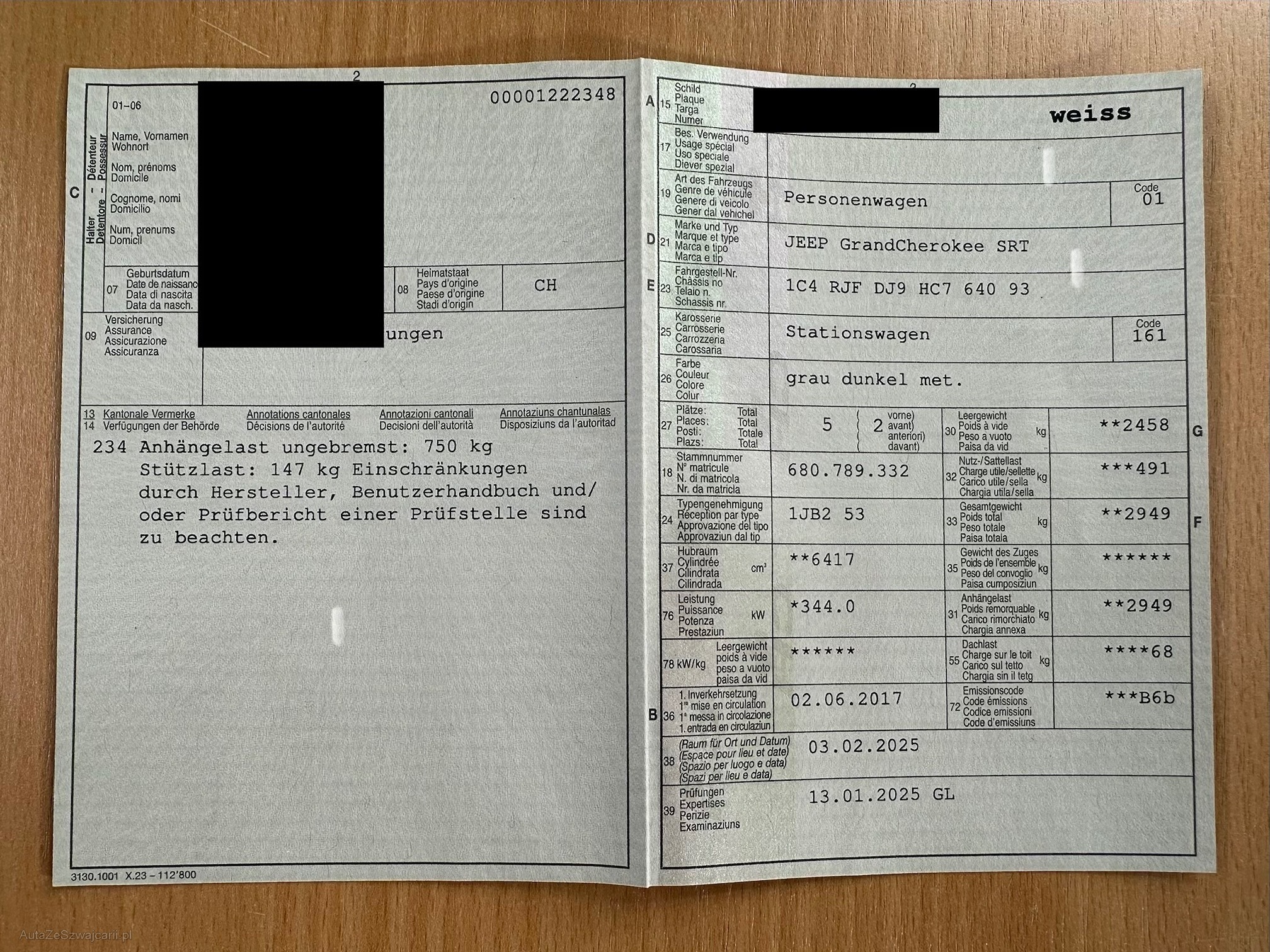 Kommentar | Top erhaltener SRT mit Anhängerkupplung (knapp 3 Tonnen Anhängelast)! -leichte Gebrauchspuren, Kratzer kleine Dellen, Steinschläge -letzter Service am 24.09.2025 siehe Foto Serviceheft -letzte MFK am 13.01.2025 siehe Foto Fzg.-Ausweis -Bremsbeläge vorne sehen noch gut aus, hinten eventuell bald zu ersetzen, siehe Fotos Am Fahrzeug wurde kein Werkstatttest getätigt Jede Gewährleistung, soweit nach Gesetz möglich, wird wegbedungen. Insbesondere sind Wandelung und Minderung ausgeschlossen! |