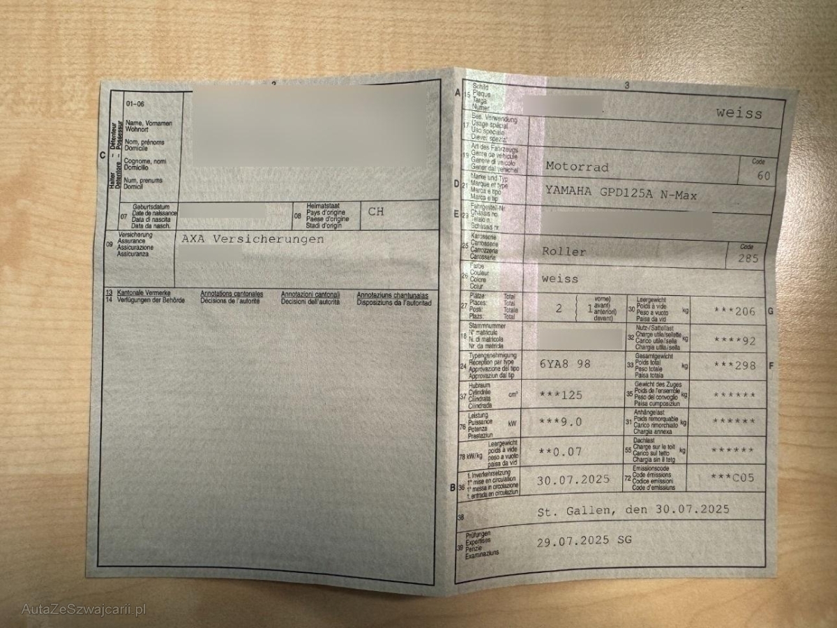 | Fahrzeugausweis | Vorhanden |