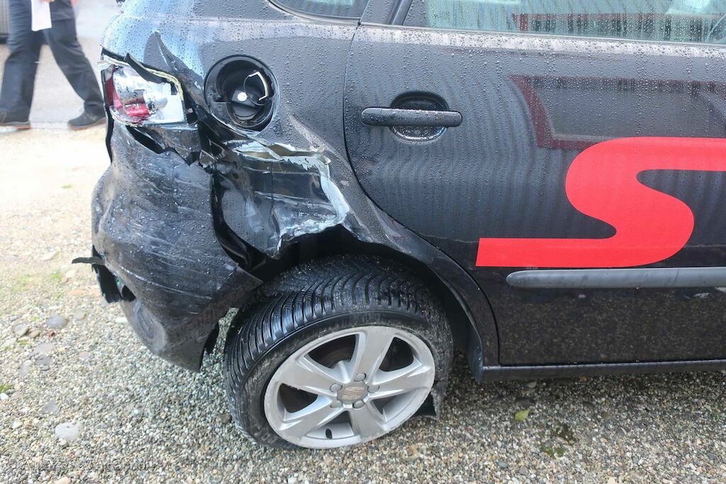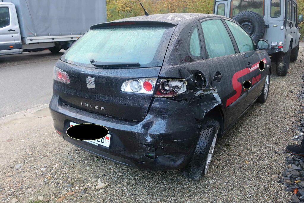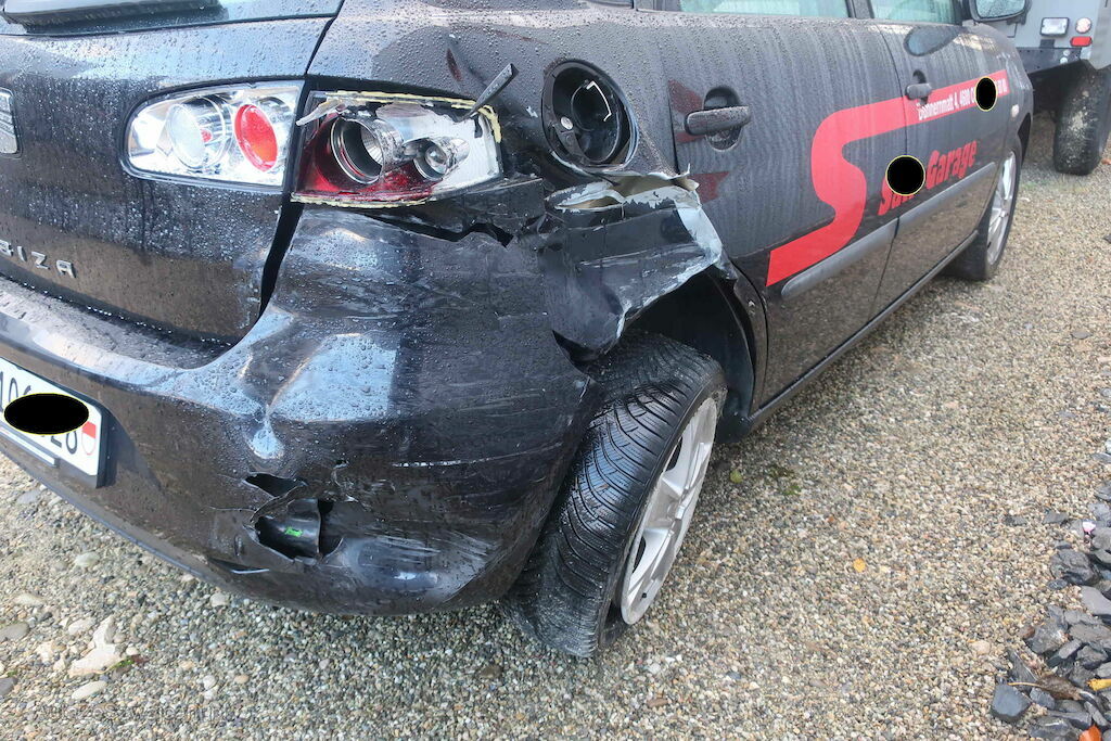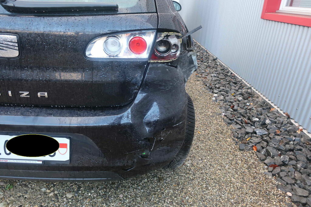 Stossfänger hinten, Rückleuchte, Seitenwand hinten rechts deformiert. Hinterachse def.