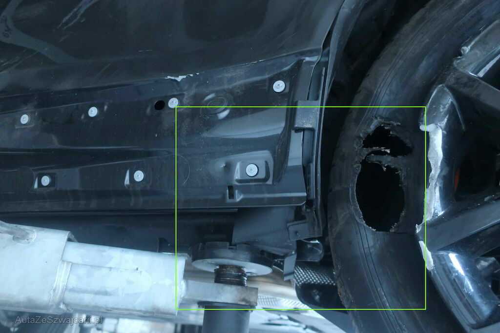 Fianco e parte meccanica posteriore sinistro piegate e anche parte meccanica ruota anteriore destra