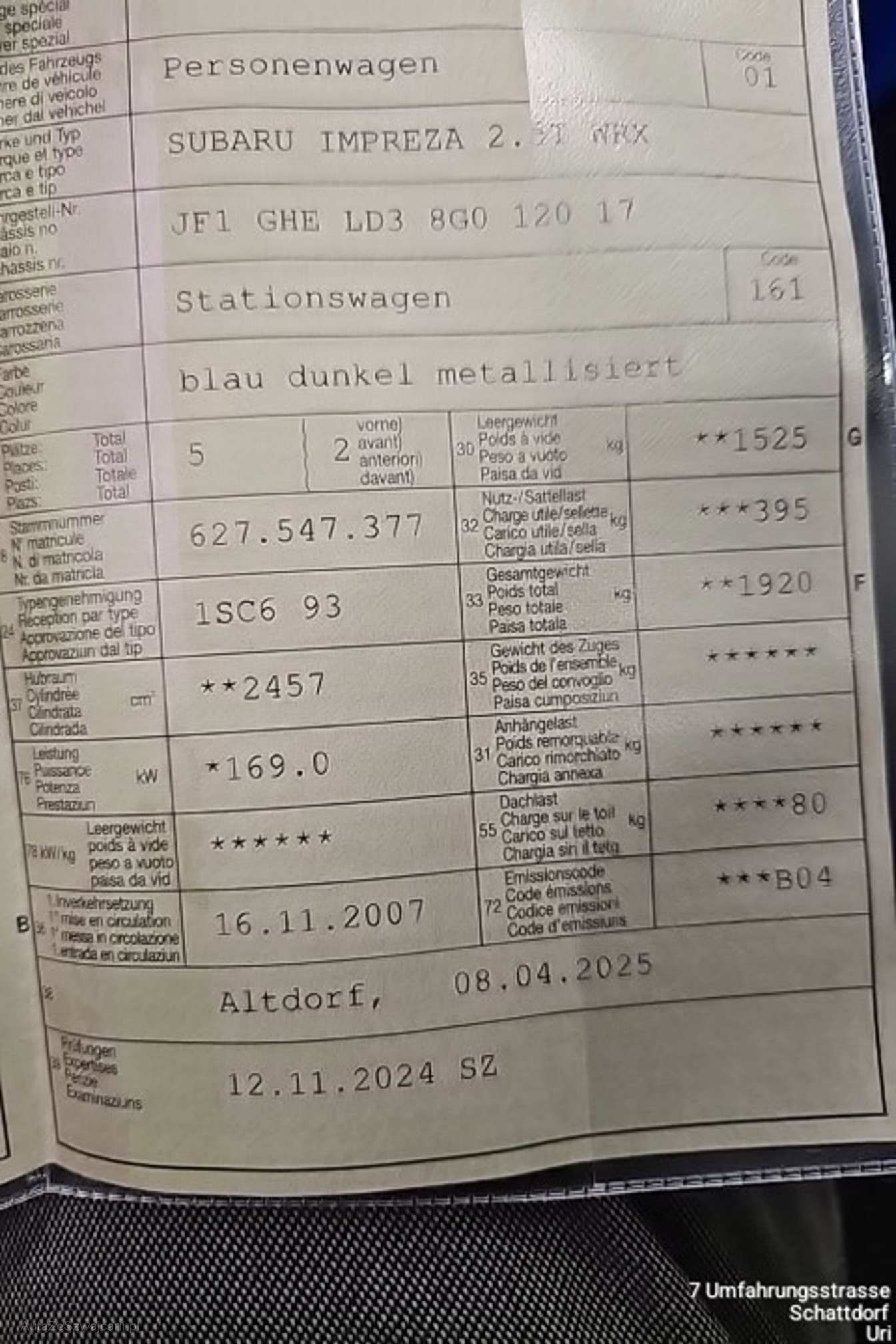 | Kommentar | Fahrzeug wurde nicht technisch geprüft |
