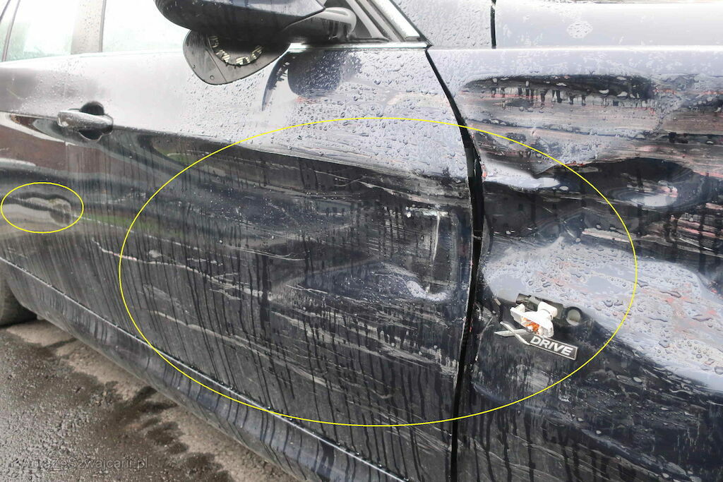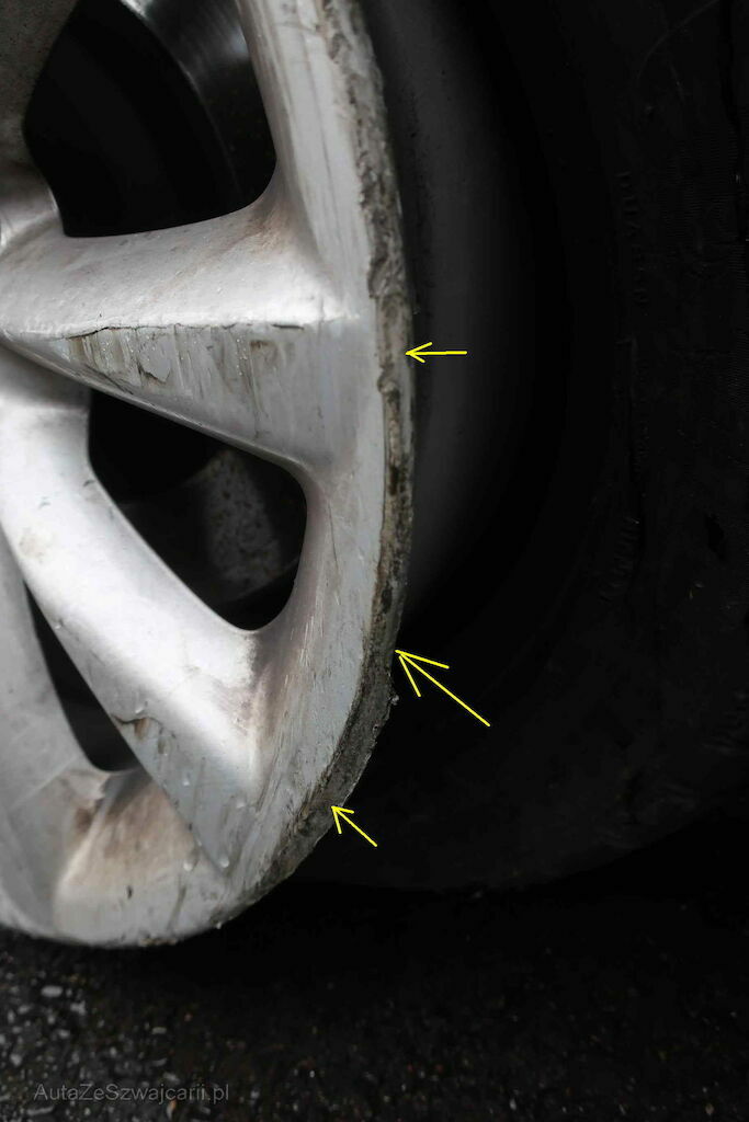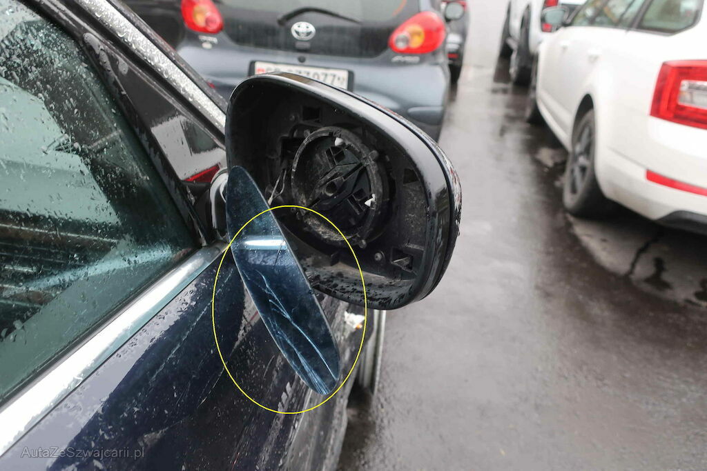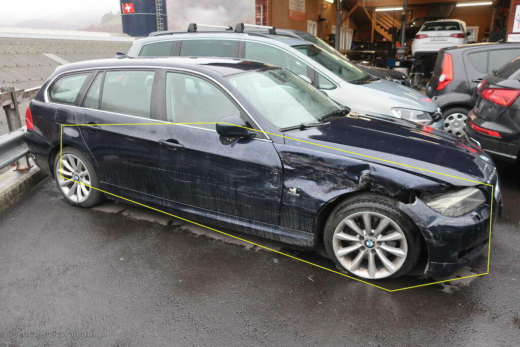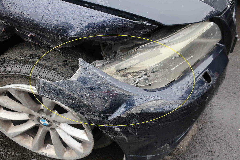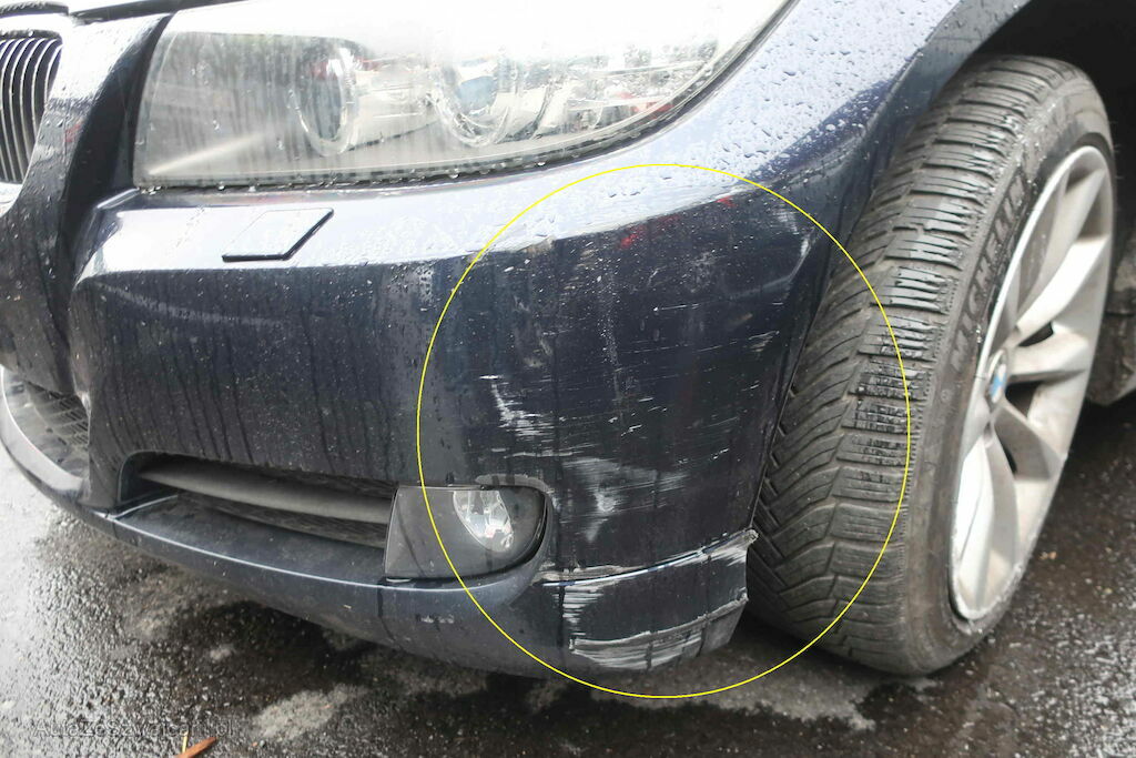 Beschädigung: Stossstange, Scheinwerfer, Schlossträger, Kotflügel, Blinker, Felge & Reifen, Radhausschale vo. re., Beifahrertüre, Spiegel re., Türe hi. re., Seitenwand hi. re., Stossstange & Felge vo. li. Risiko Radaufhängung & Lenkung vo.