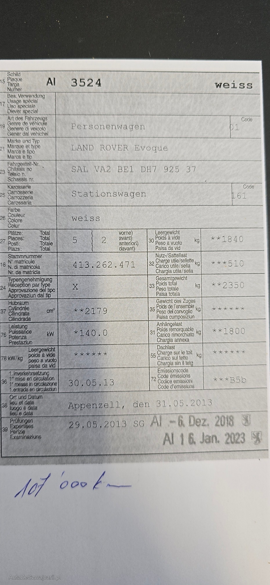| VIN | SALVA2BE1DH792537 |