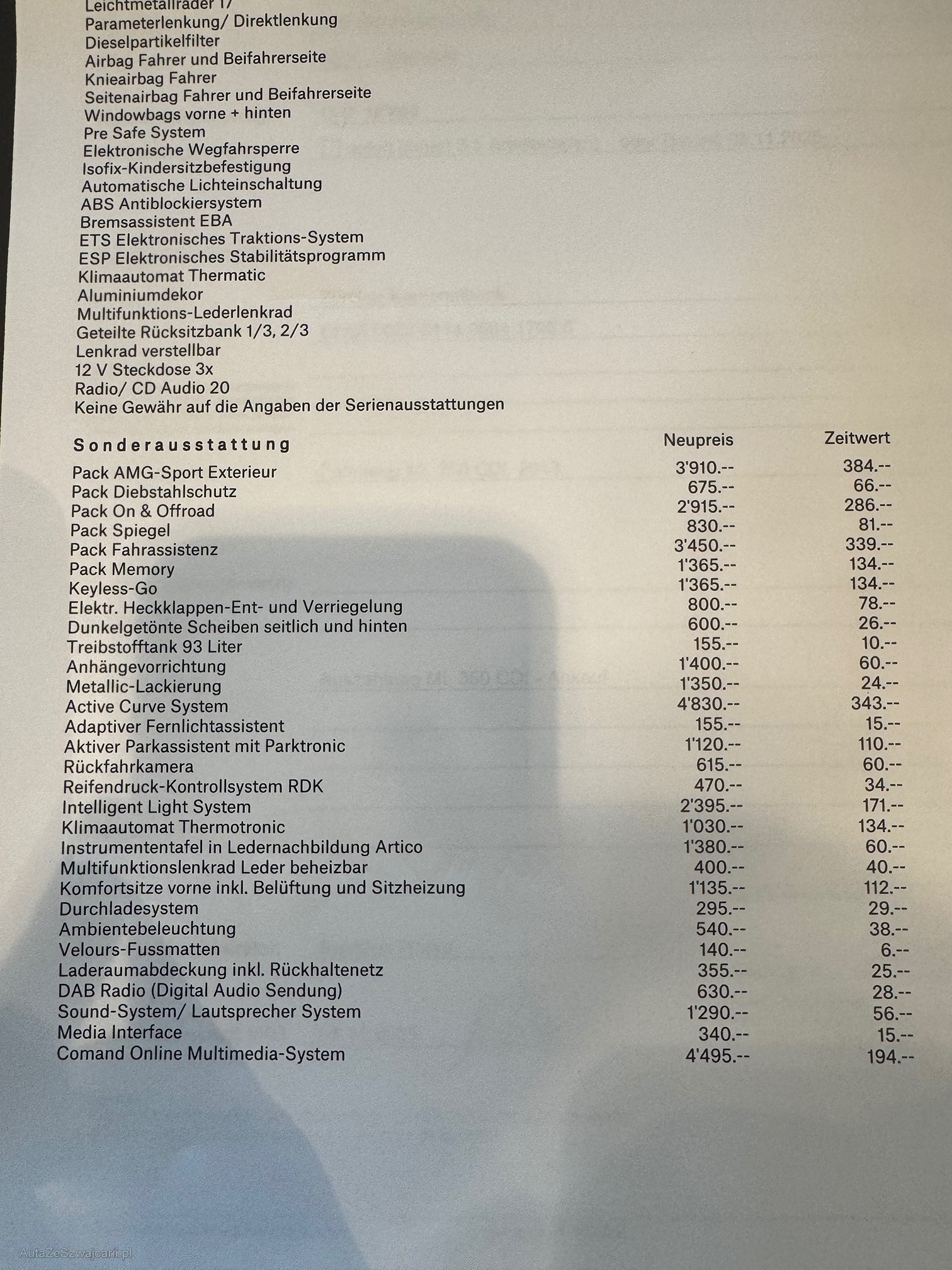 | Kommentar | Fahrzeug aus 1. Hand Nur Sommerreifen (siehe Fotos) - dazu 4 Alu Mercedes Original Felgen ohne Winterreifen Rückfahrkamera Tot Winkel Warner Adaptiver Tempomat Luftfahrwerk Sitzkühlung und Heizung Standheizung AHK Schwarze Ledersitze ohne Risse |