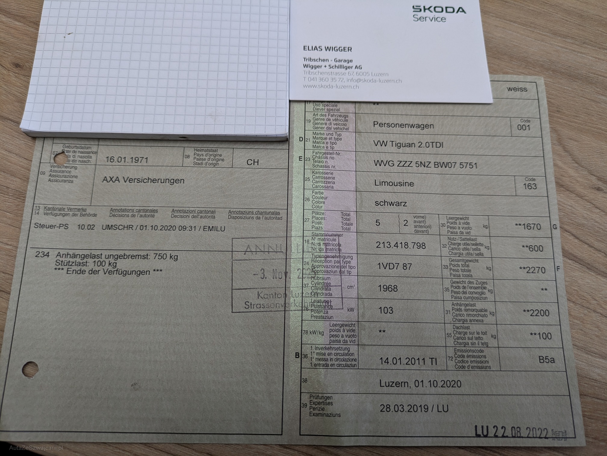 | VIN | WVG ZZZ 5NZ BW07 5751 |
