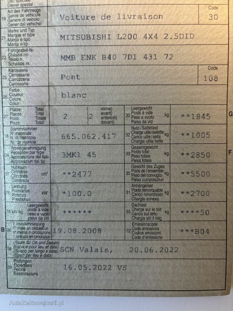 | Typ | L200 4X4 2.5 DID |