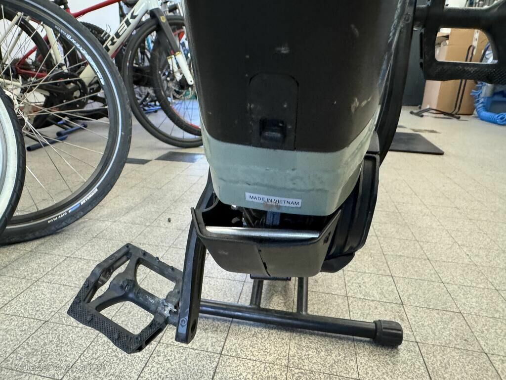 Roue, fourche, support moteur, cache moteur, pédalier, manivelle de pédalier, selle, cadre endommagés