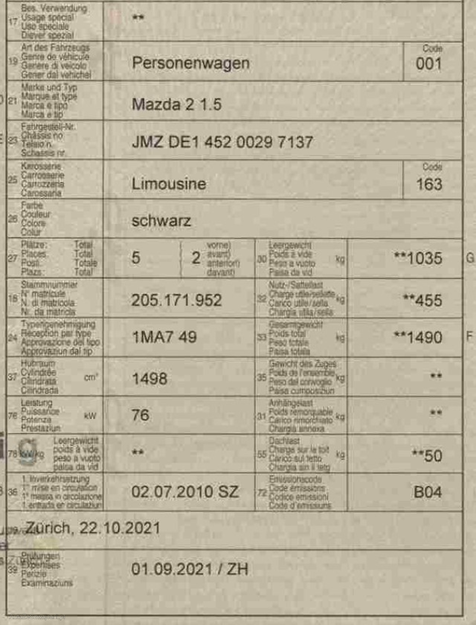 | Letzte Inspektion | 2021-09-01 |