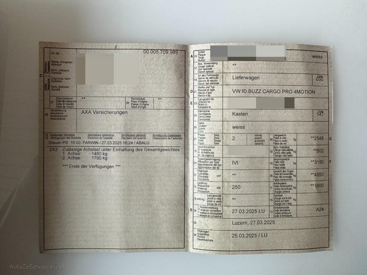 | Fahrzeugausweis | Vorhanden |