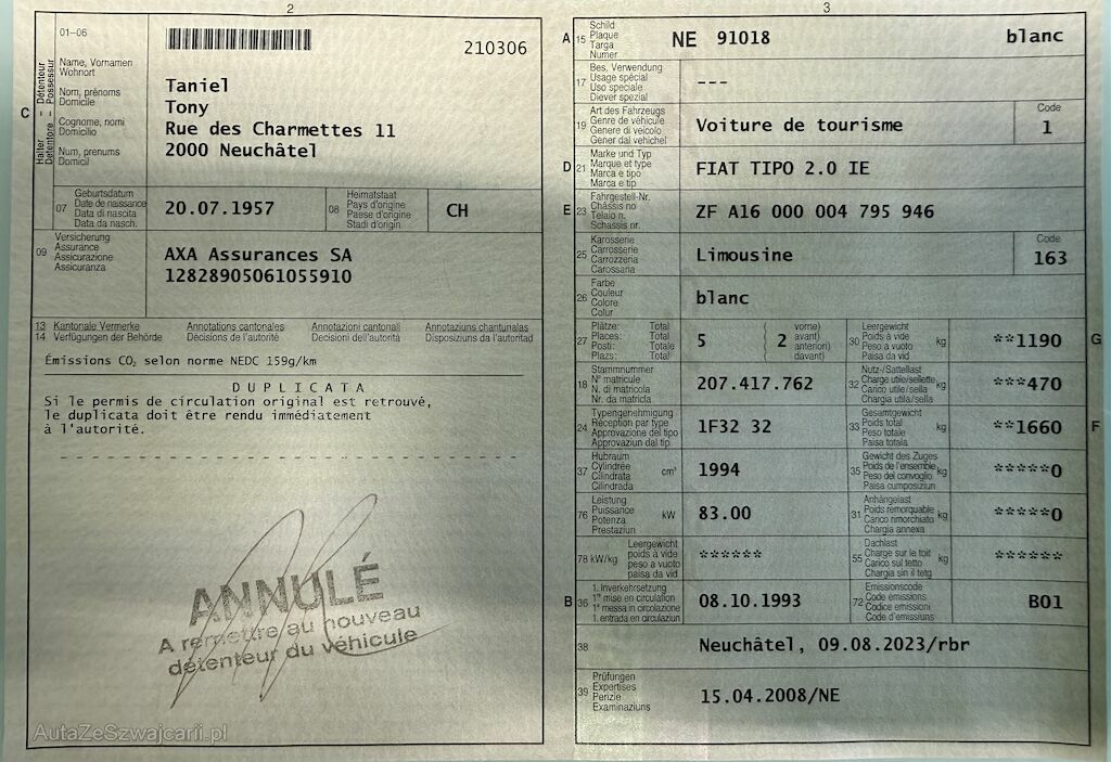 1. rejestracja: 8 października 1993