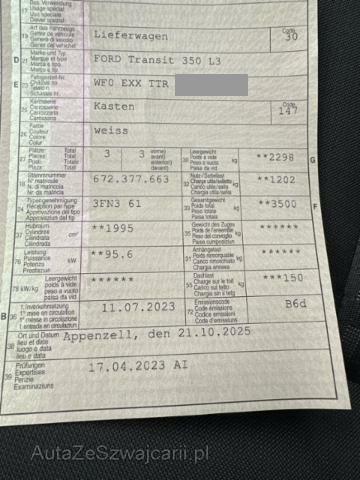 | Ausstattung | Serienaustattung Airbag Fahrerseite Aussenspiegel elektrisch verstellbar und beheizbar Schiebetüre rechts Zentralverriegelung mit Fernbedienung Lenkrad verstellbar Heizbare Frontscheibe Seitenschutzleisten Schmutzfänger hinten Nebelscheinwerfer vorne Verzurr-Ösen im Laderaum Park-Distanz-Sensor vorne + hinten ABS + EBD Elektr. Bremskraftverteilung Klimaanlage/ Pollenfilter Geschwindigkeitsregelanlage Garantie 3 Jahre/ 100'000 km Dieselpartikelfilter Generator verstärkt Reifen-Reparatur-Kit Radzierblenden ESP mit TCS und Berganfahrassistent Stop + Start System Keine Gewähr auf die Angaben der Serienausstattungen Stahlfelgen 16" Pack Sitz 13 Heck-Flügeltüren 180° Mittelhochdach MyKey Audiosystem Achslasterhöhung vorn auf 1850 kg Fahrspur-Assistent mit Müdigkeitswarner/ Fernlicht-Assistent Fahrspur-Assistent/ Fahrspurhalte-Assistent Notruf-Assistent Notbrems-Assistent aktiv Treibstofftank 70 Liter Audiosystem mit 12" Multifunktionsdisplay SYNC4 Pack Technologie 9 Sonderausstattung Airbag Beifahrerseite Holzboden im Laderaum Ganzjahres-Reifen LED Aussenleuchte Downlight Pack Ladungssicherung 2 AGM Batterien |