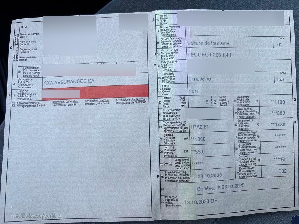 | Fahrzeugausweis | Vorhanden |