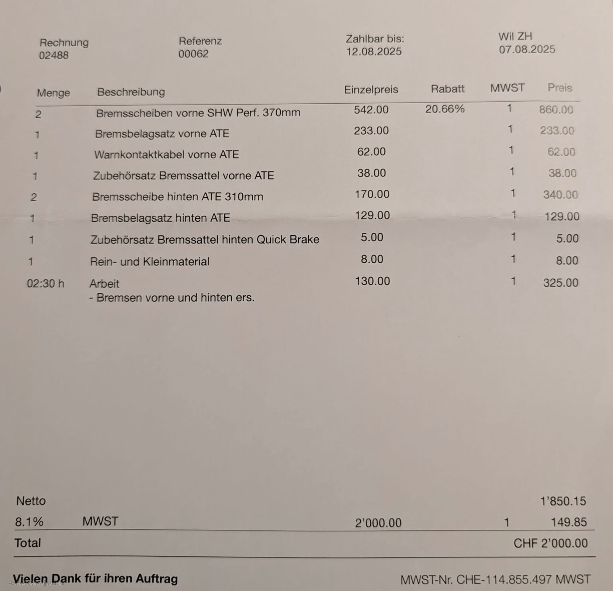 | Vordere Bremsen müssen ersetzt werden | No |