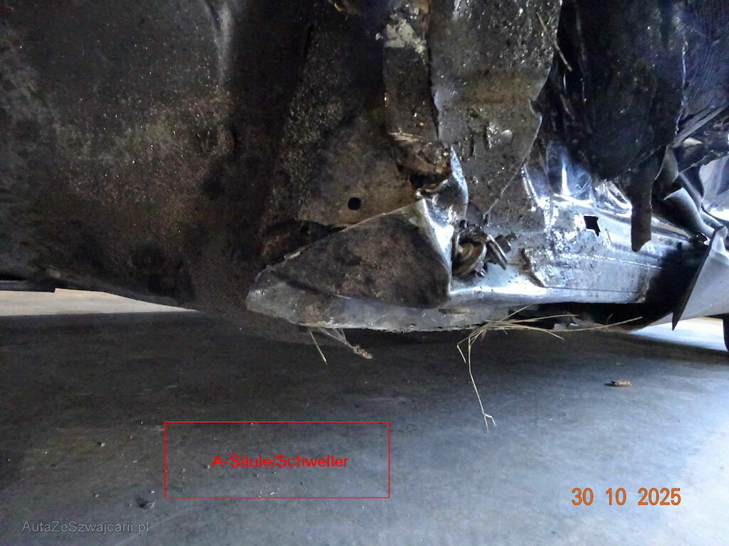 Aufhängung V.L. abgerissen und am Boden gestreift / Deformation Innenradkasten + A-Säule + Schweller Li. / Motorhaube / Stst. vo. Türen Li. / Seitenwand / Stst. H.L. / Risiko Getriebe / Fz. weder Fahr noch Rollbar.