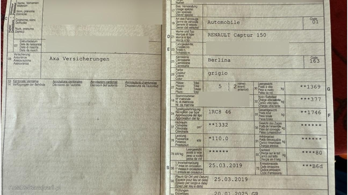 | Fahrzeugausweis | Vorhanden |