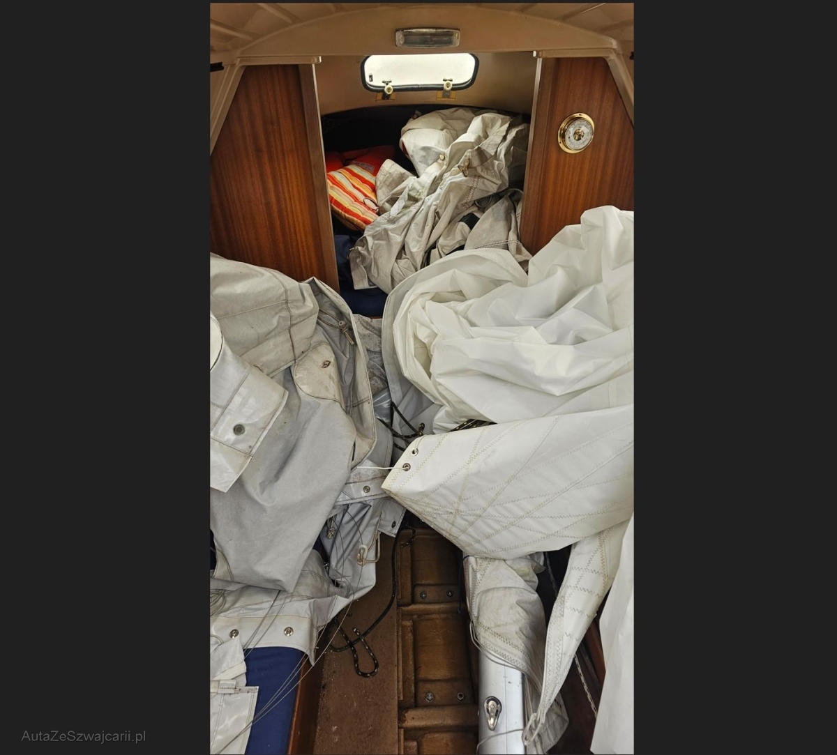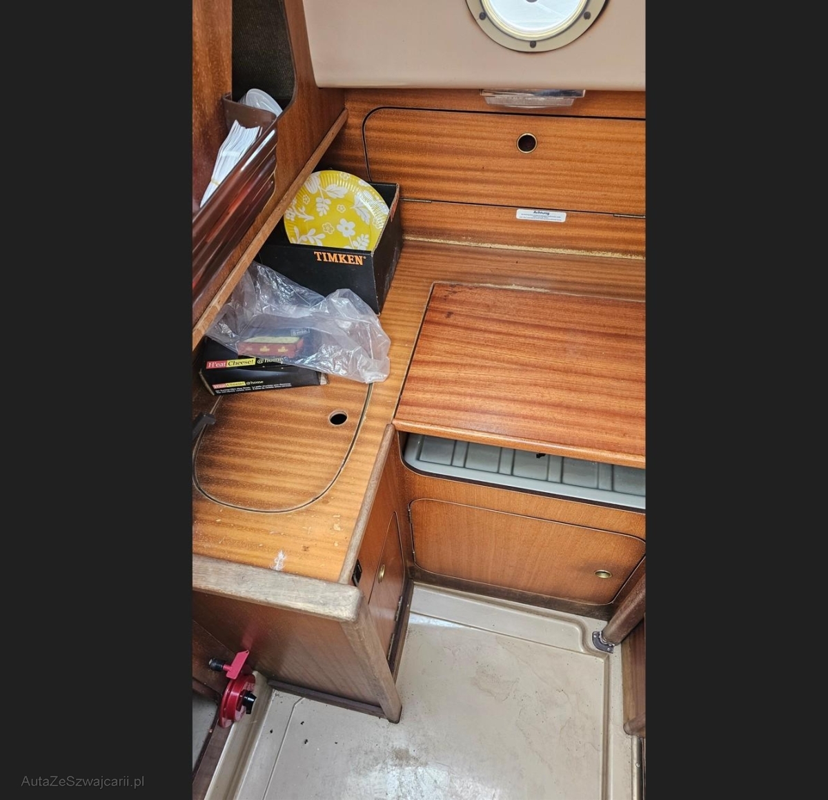 | Schadensbeschreibung | Schiff durch div. Stürme im Juni mit Wasser gefüllt. Bei der Besichtigung am 08. September war im Boot nur noch unter dem Blindboden vor dem Motorraum Wasser vorhanden. Dieses Restwasser konnte u.a. wahrscheinlich über die dortigen offenen Schraubenlöcher in den Hohlraum gelangen und sich dort sammeln. Ansonsten war das Boot trocken, da es für den Kranzug auch ausgepumpt werden musste. / Die Wasserhöhe in der Kabine zu einem früheren Zeitpunkt lässt sich anhand der deutlich sichtbaren Ablagerungen und Verfärbungen an Holzwänden und Kunststoffteilen ablesen. Diese Linien zeigen, dass über einen längeren Zeitraum rund 5-6 cm Wasser oberhalb des Kabinenbodens gestanden haben muss. Der Wasserstand war gemäss Bilddokumentation zwischen Anfang Juli und der Auswasserung im August praktisch unverändert. Wäre das Wasser aus einem Leck im Unterwasserschiff eingedrungen, hätte sich der Pegel zwangsläufig weiter erhöht, bis das Boot vollgelaufen wäre. Da dies nicht eingetreten ist, kann ein Leck im Bereich unterhalb der Wasserlinie sicher ausgeschlossen werden. / Als wahrscheinliche Ursache ist somit Meteowasser von oben anzunehmen. Bei Booten dieses Alters kommt es häufig vor, dass: •Decksbeschläge (Relingsstützen, Klampen, Püttinge) undicht werden, •Fenster, Luken und Schiebeluk, Motorraumdeckel nicht mehr dicht abschliessen, •über den Mastfuss oder Kabeldurchführungen Regenwasser nach innen läuft, •oder das Cockpitwasser bei starker Belastung durch Regen und Wind nicht vollständig über die Selbstlenzer abfliesst und über undichte Stellen ins Bootsinnere gelangt. / Hinzu kommt, dass die vorhandene Persenning anhand der Fotos nicht bis über die Bordwand abdeckt. Windgetriebener Regen konnte sich daher auf dem Deck sammeln und an undichten Stellen eindringen / Zusammenfassend ist festzustellen: Das Wasser im Boot stammt mit sehr hoher Wahrscheinlichkeit von Regen- und Oberflächenwasser, dass über undichte Aufbauteile und Beschläge in die Kabine gelangte und dort stehen blieb. Ein Unterwasserleck kann ausgeschlossen werden. |