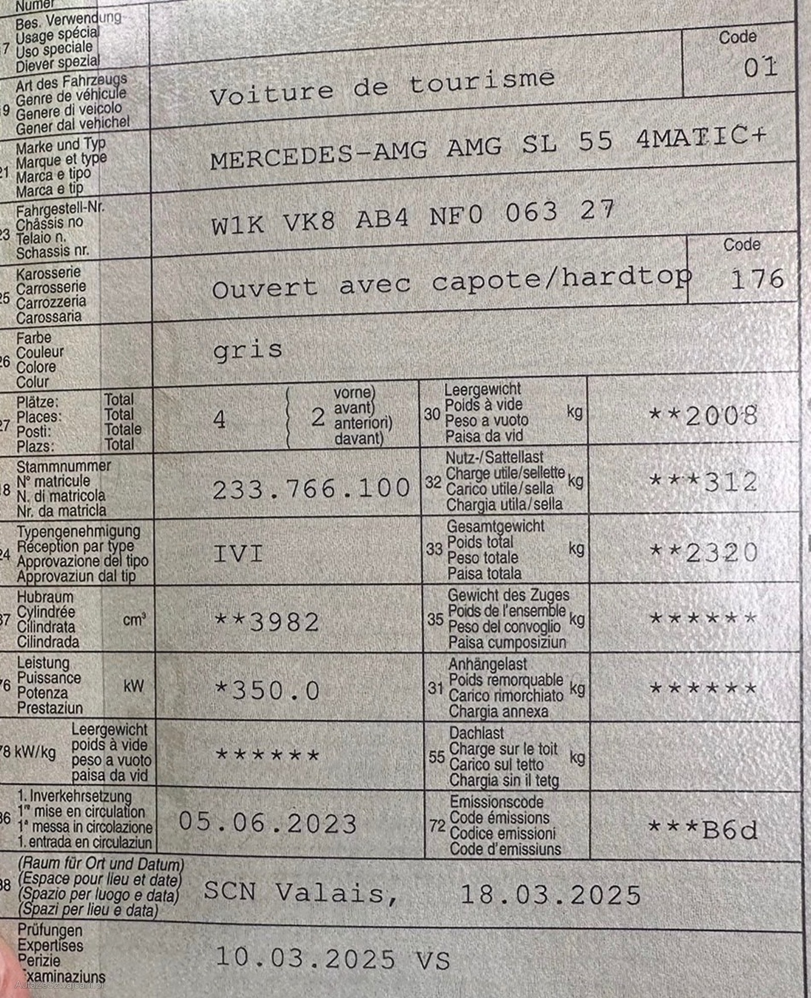 | VIN | W1K VK8 AB4 NFO 063 27 |