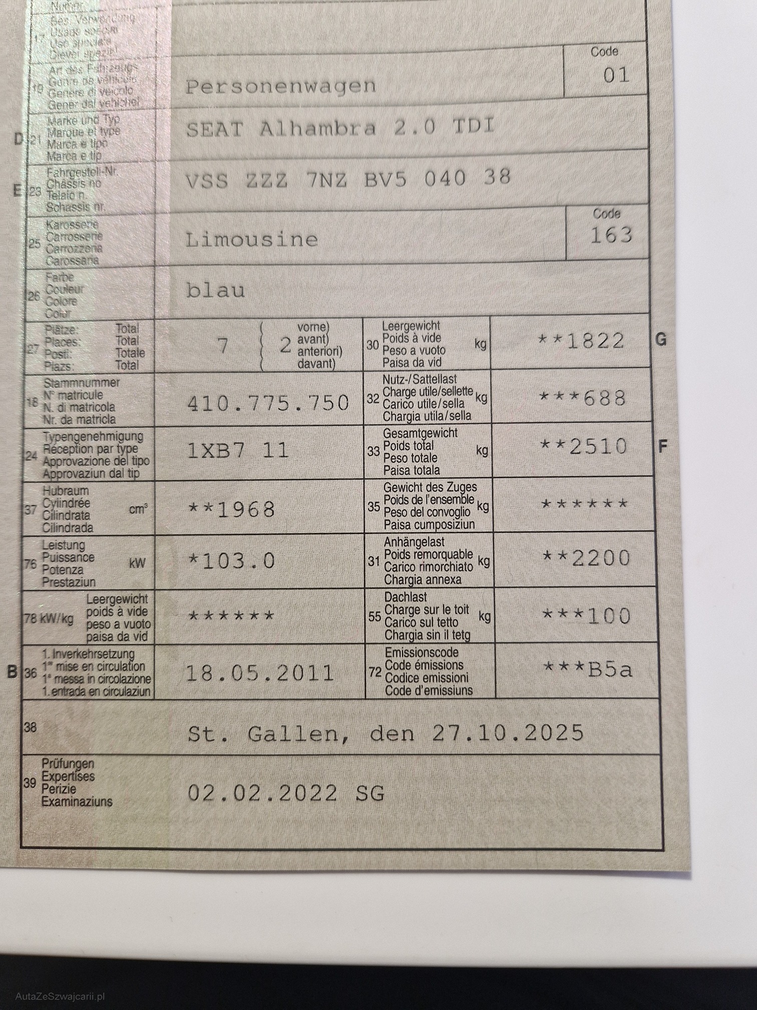 | VIN | VSSZZZ7NZBV504038 |