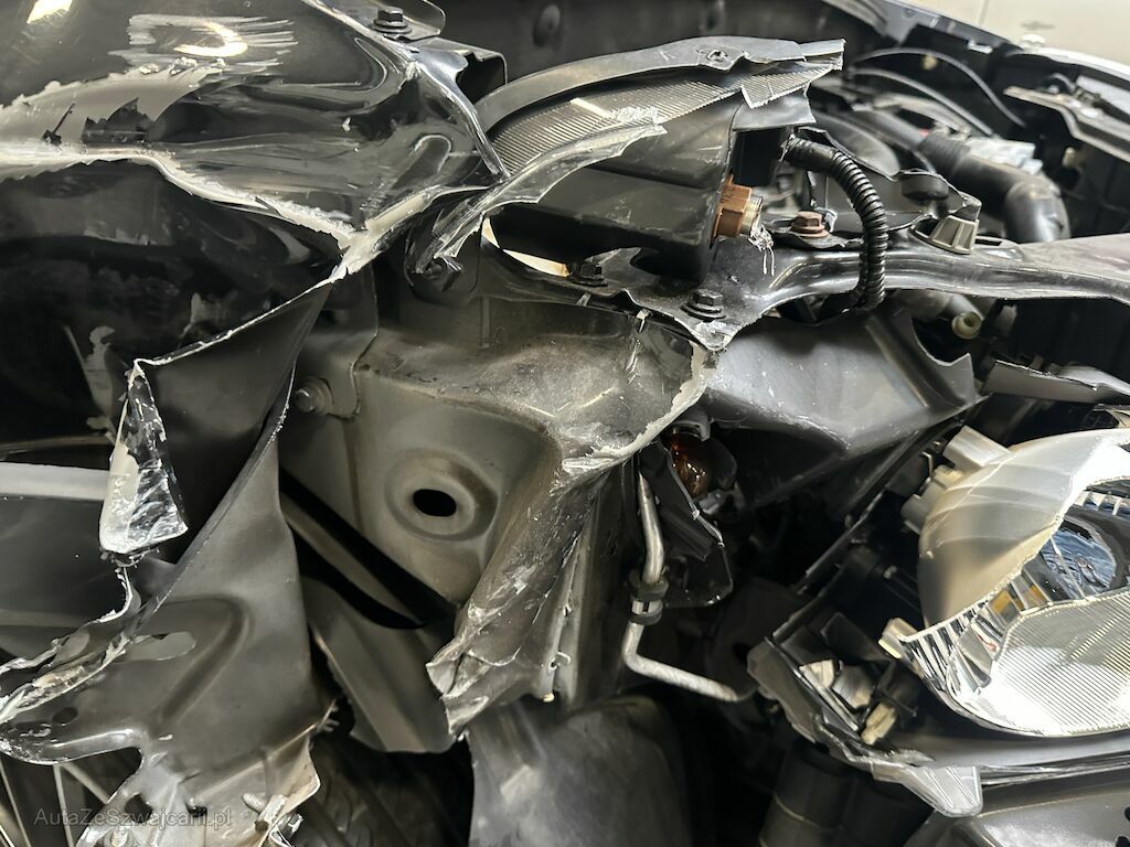 Anprall vorne rechts. Dabei wurden die Stossstange, der Scheinwerfer, der Kotflügel, die Haube, der Frontrahmen, die Radaufhängung inkl. Felge und Reifen, der obere Längslenker rechts und diverse Bauteile im Anprallbereich beschädigt.
