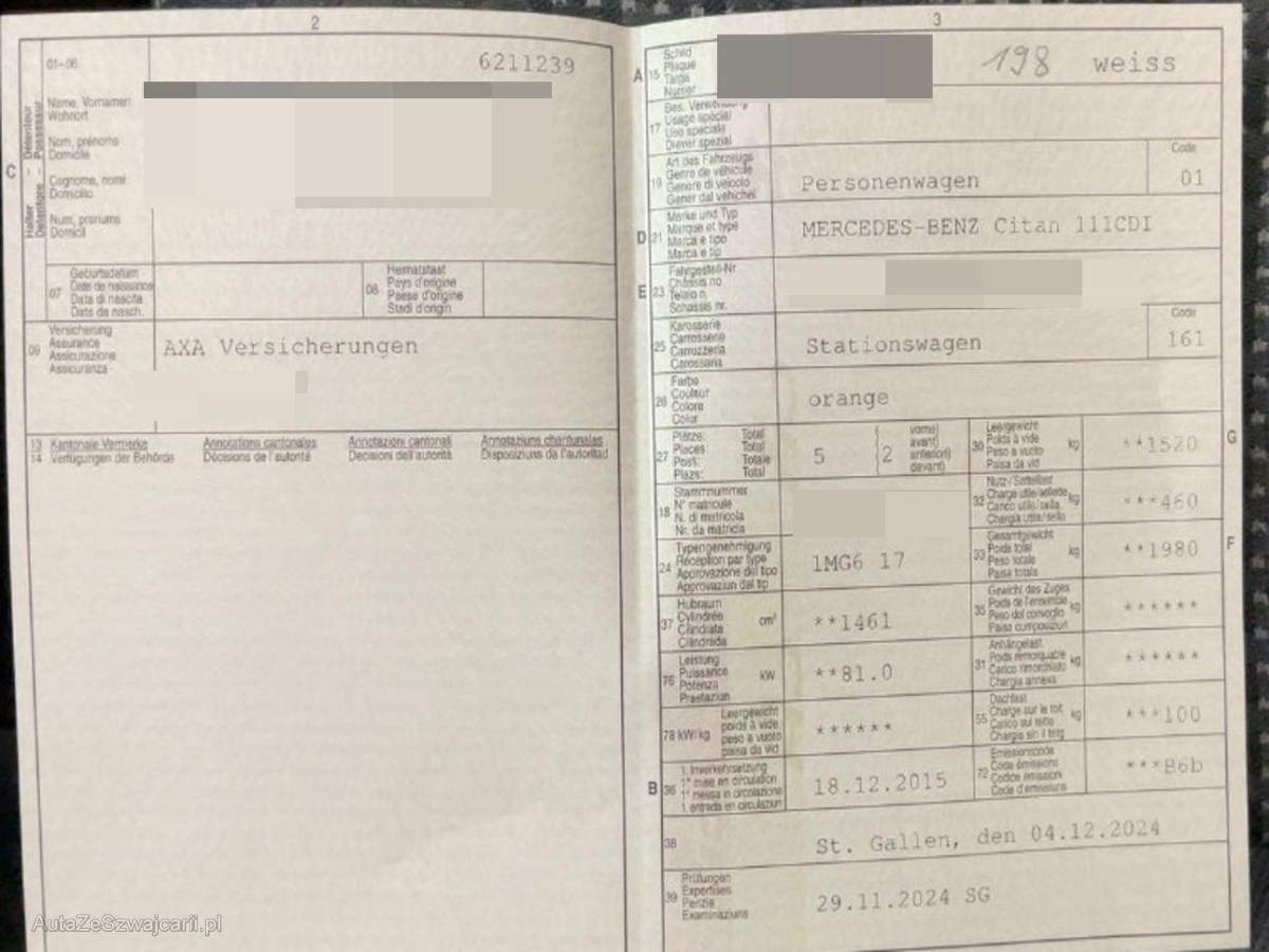 | Fahrzeugausweis | Vorhanden |