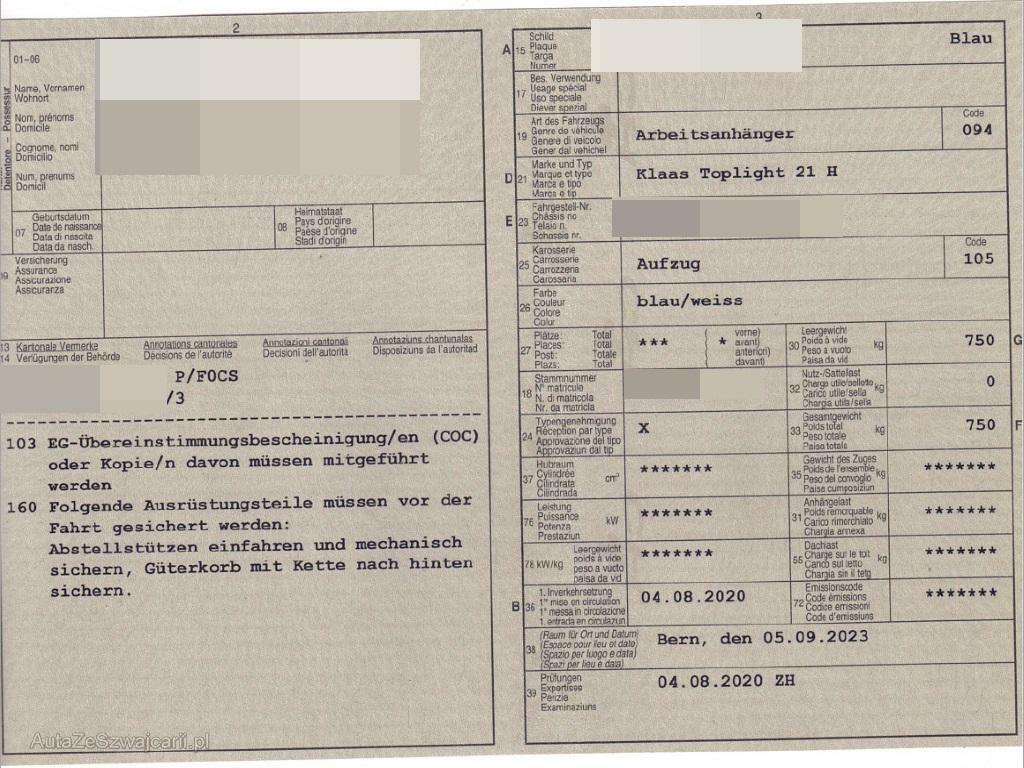 | Fahrzeugausweis | Fehlt |
