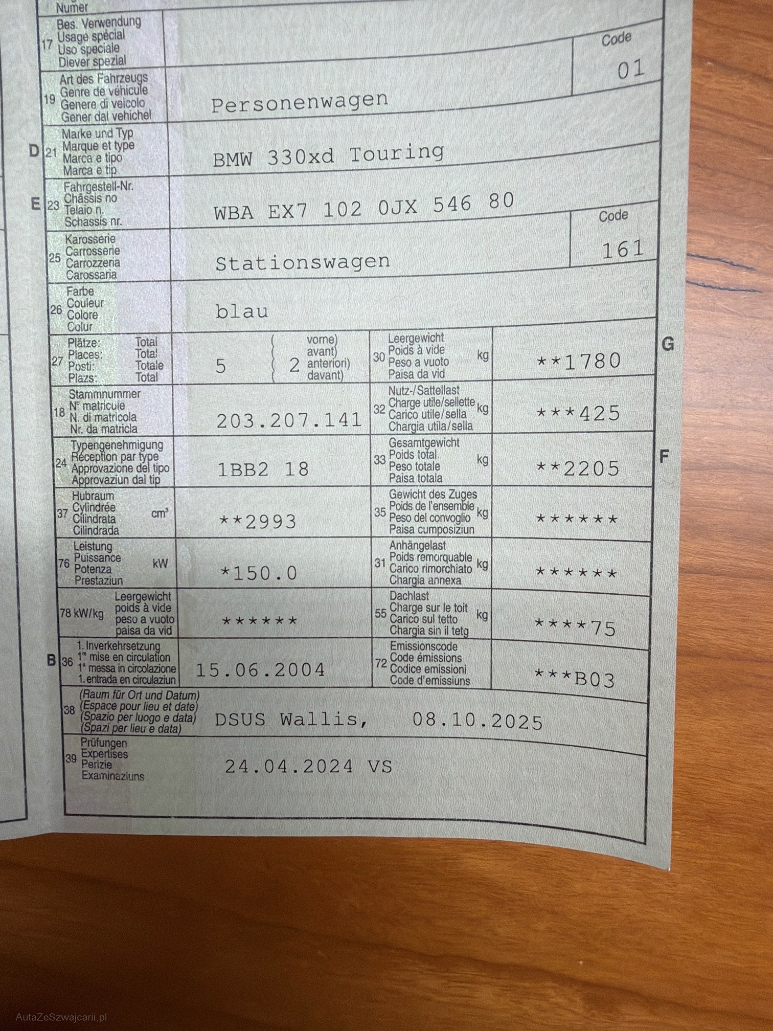 | VIN | WBA EX7 102 0JX 546 80 |
