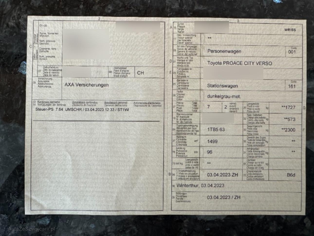 | Fahrzeugausweis | Vorhanden |
