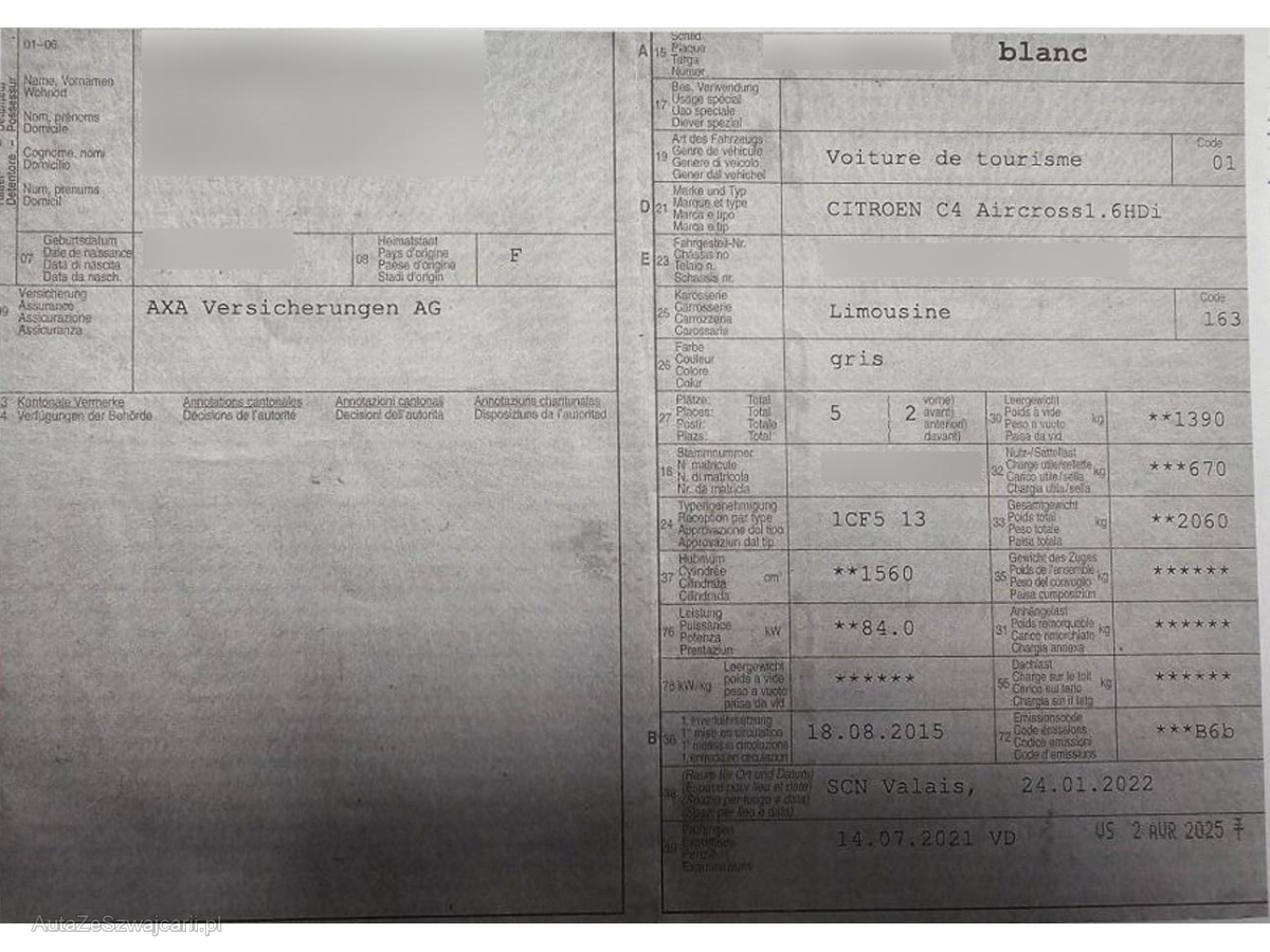 | Fahrzeugausweis | Vorhanden |