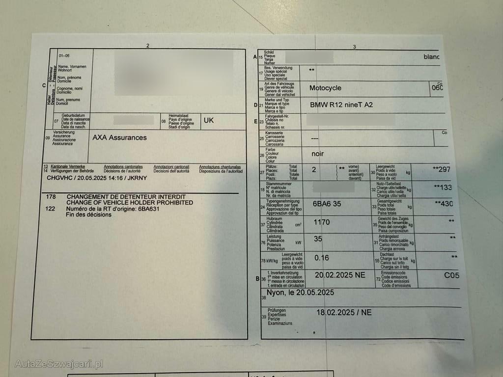 | Fahrzeugausweis | Vorhanden |
