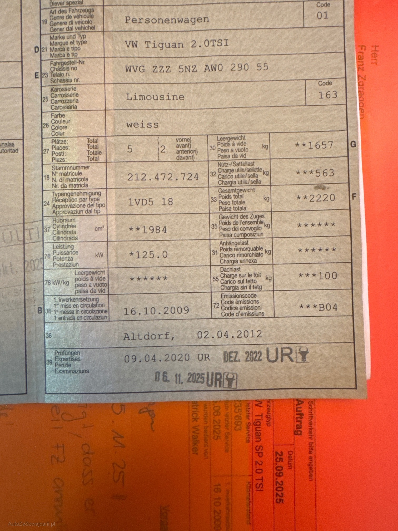 | Kommentar | - Fahrzeug ab MFK |