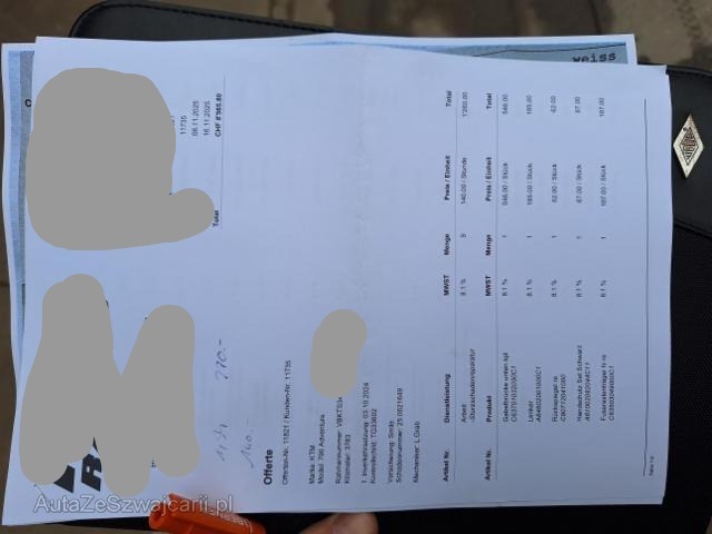 | Beschädigungen | Weitere Beschädigungen Ganze rechte Seite: Schwinge, Tank, Lenker, Verschalung, Kühler, Schalldämpfer beschädigt. Siehe Fotos |