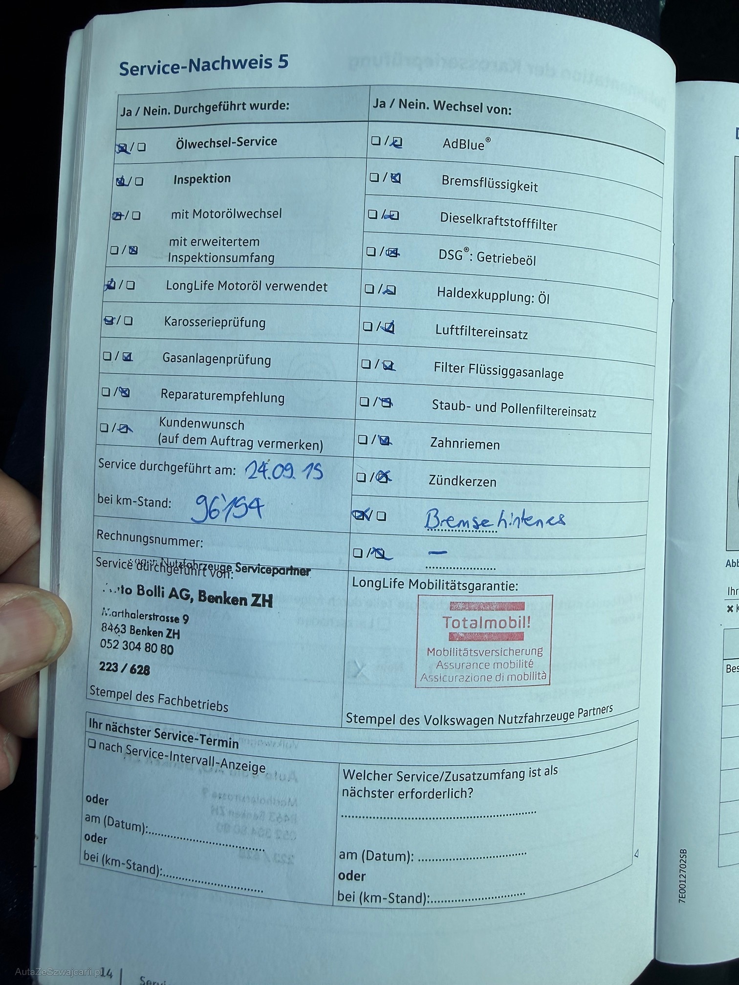 | Hintere Bremsen müssen ersetzt werden | No |