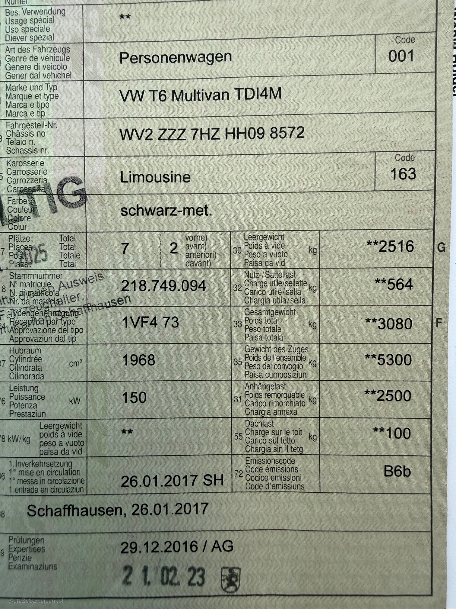 | Kommentar | Keine Eingangskontrolle durchgeführt Bekannt Wassereintritt beim Innenlicht Geräusch ev. Querlenker |
