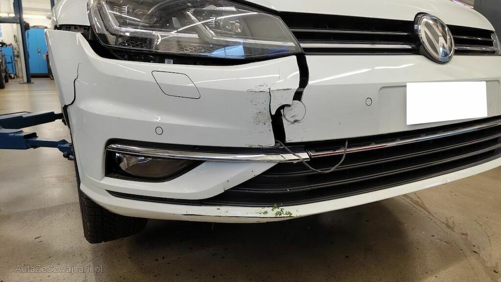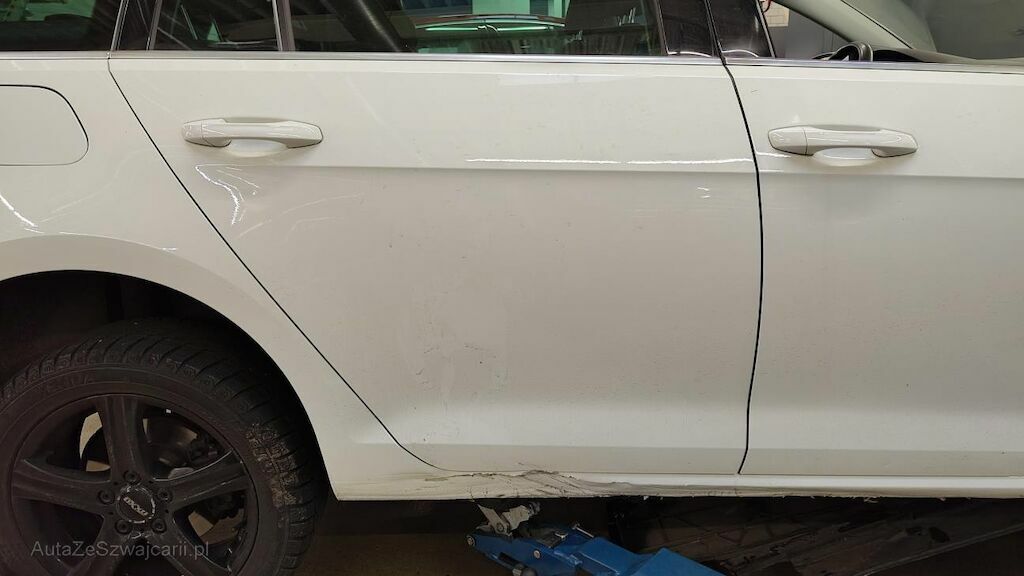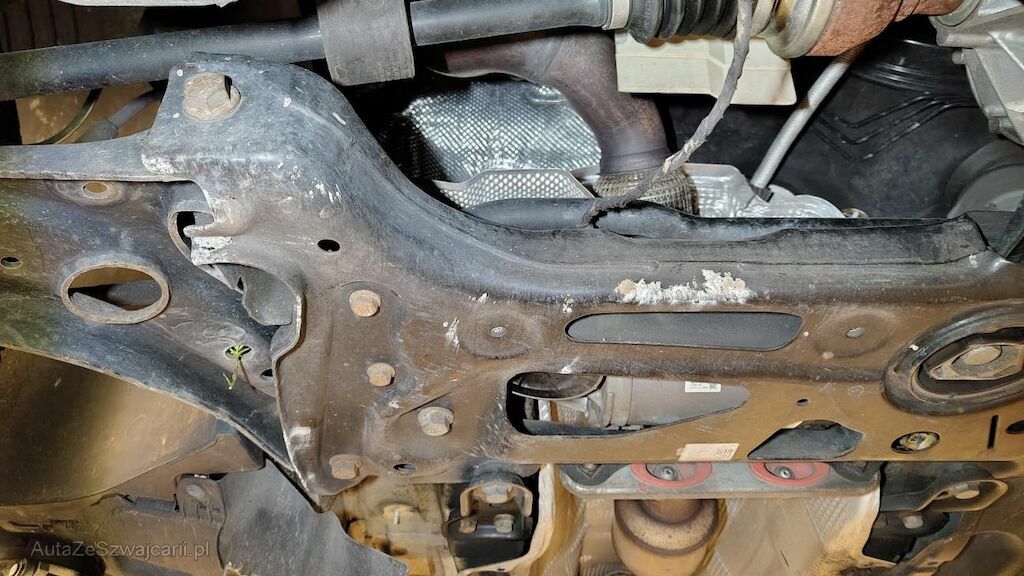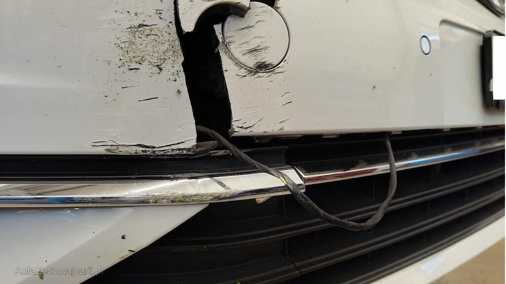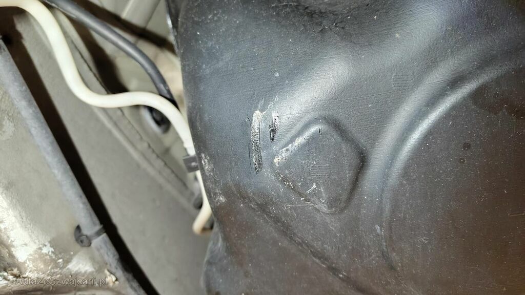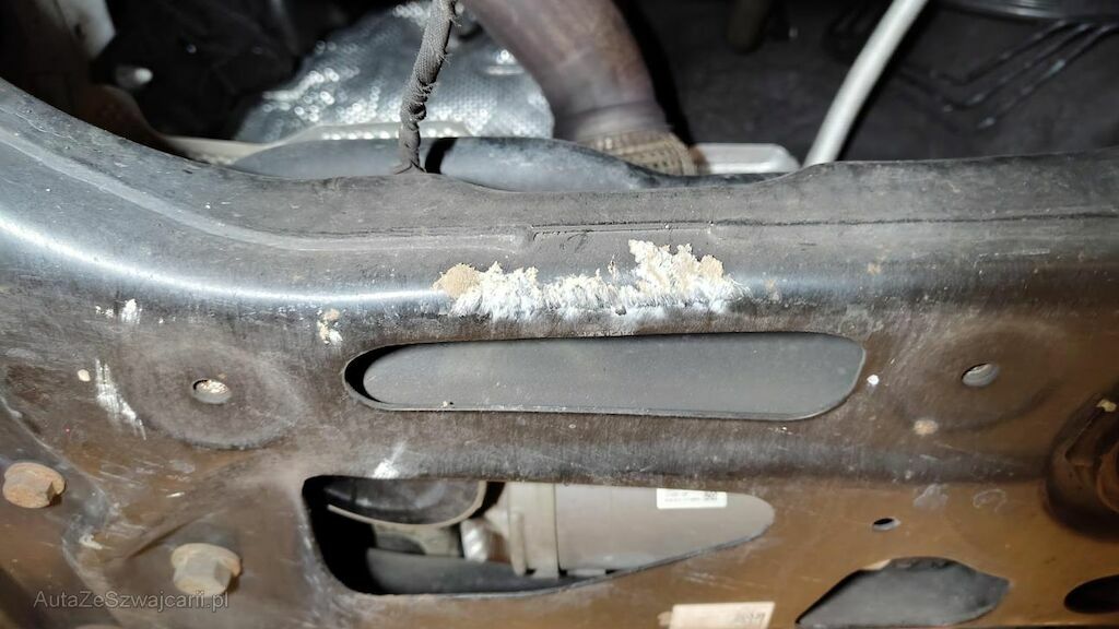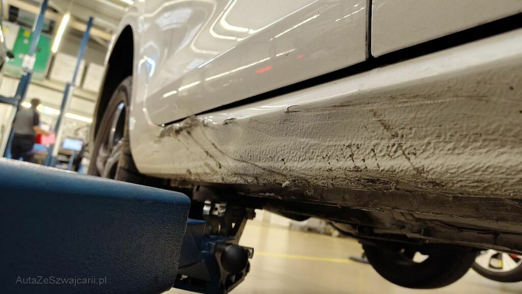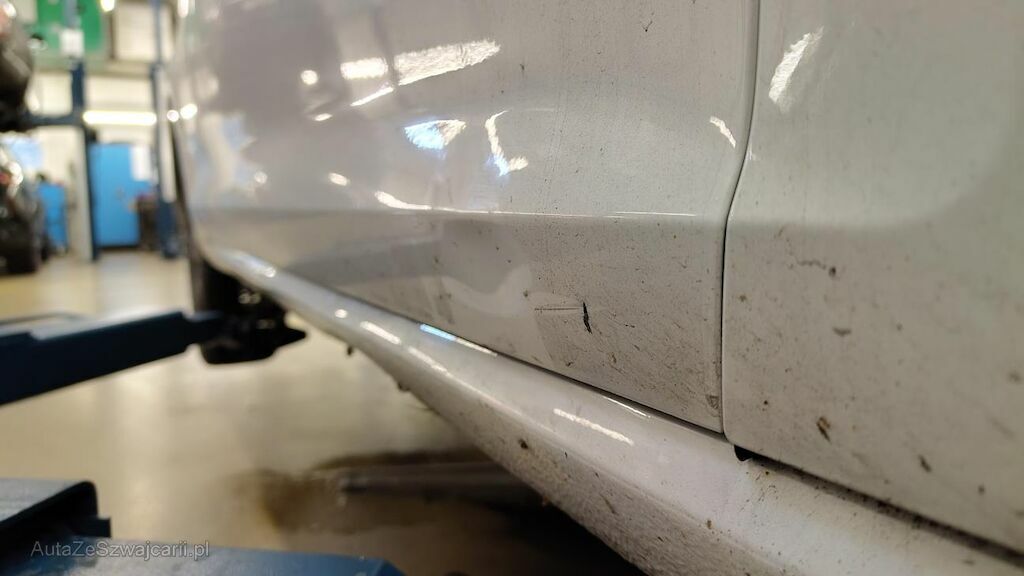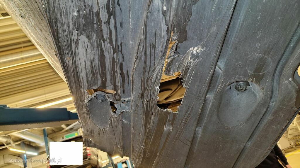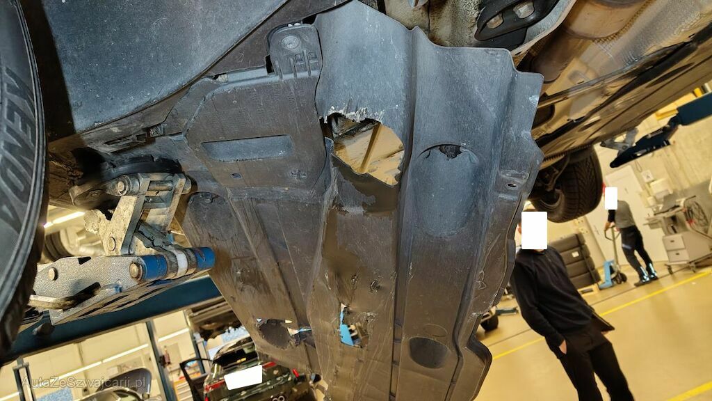 Stossstange vorne eingedellt, gerissen und zerkratzt. Zierleisten, Kühlergitter, Spoilerlippe unten und Kabelstrang an der Stossstange vorne beschädigt. Aggregateträger vorne eingedellt. Unterbodenverkleidung rechts beschädigt.Kraftstofftank beschädigt. Bodenblech und Leitungskanal rechts hinten eingedellt und zerkratzt. Kraftstoffleitungen beschädigt. Scheinwerfer rechts beschädigt. Kotflügel vorne rechts verschoben. Schweller rechts eingedrückt und zerkratzt. Türen hinten rechts eingedellt und zerkratzt. Vorschäden: Diverse Gebrauchsspuren usw., Delle im Kotflügel vorne rechts. Türe vorne rechts eingedellt mit Lackschaden. Steinschlag auf der Motorhaube. Lackschäden auf der Ladekante an der Stossstange hinten. Aussenspiegel links zerkratzt.