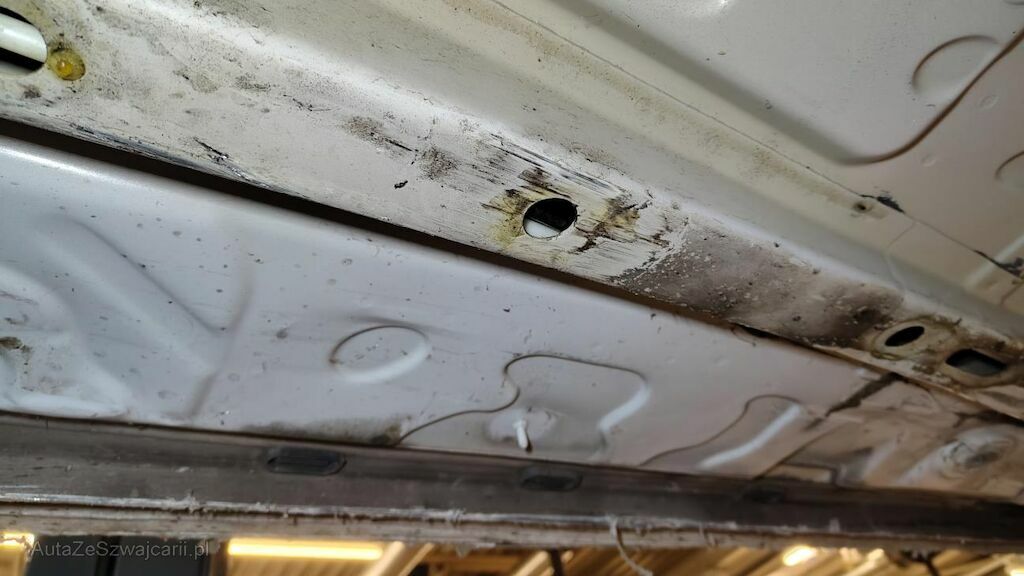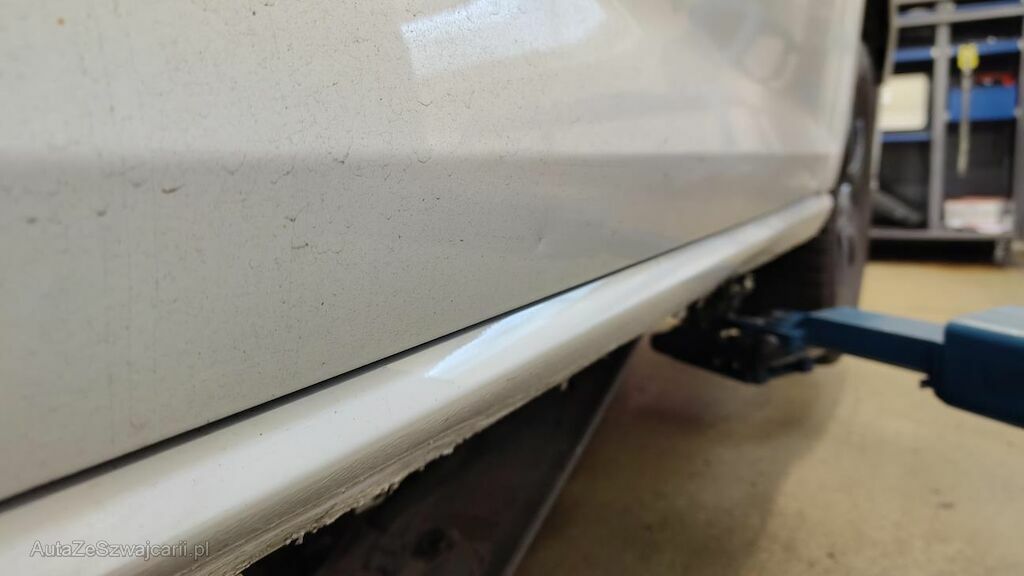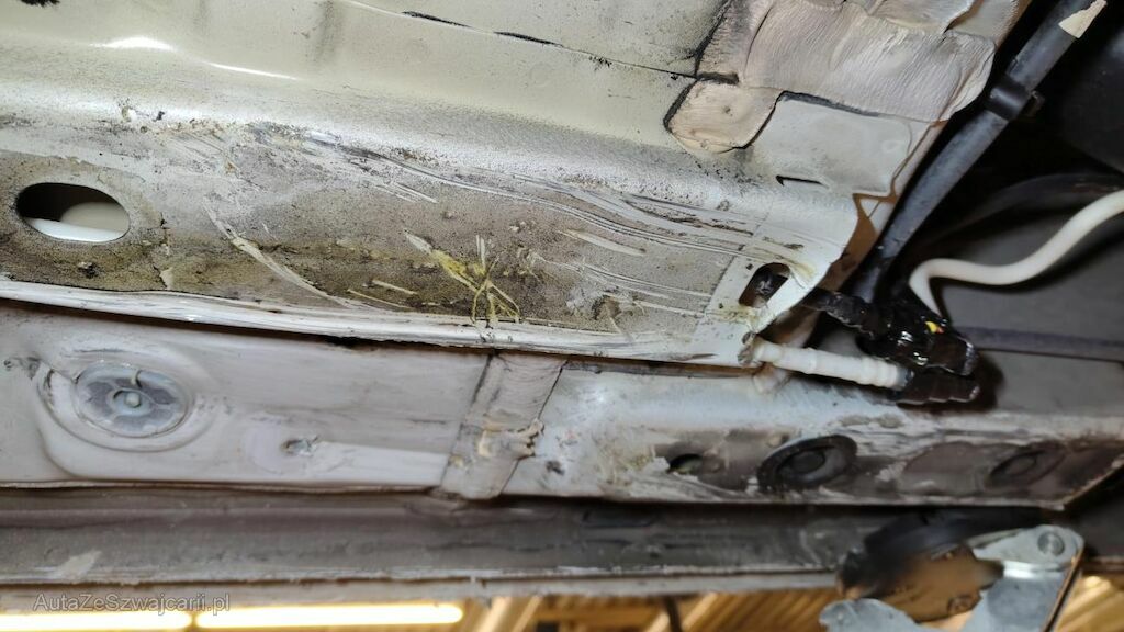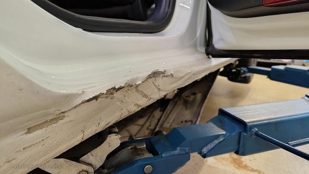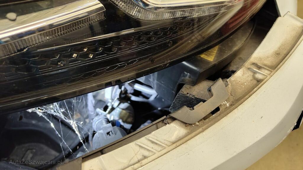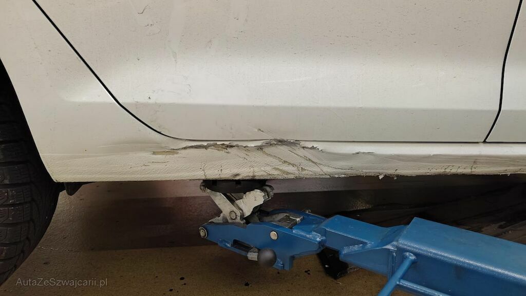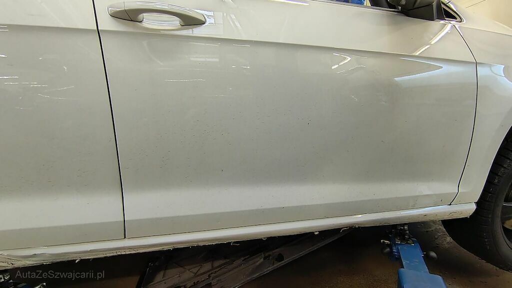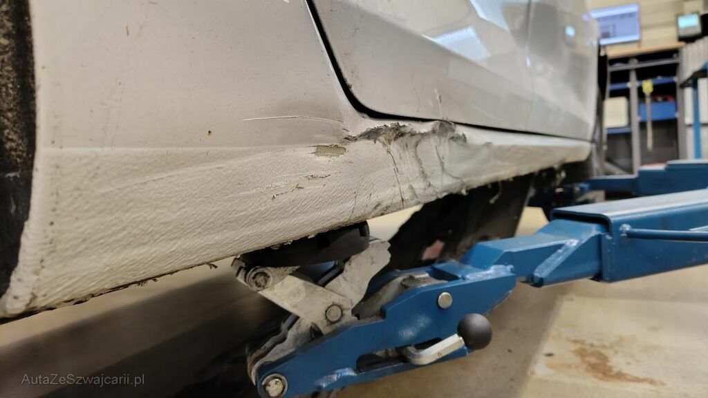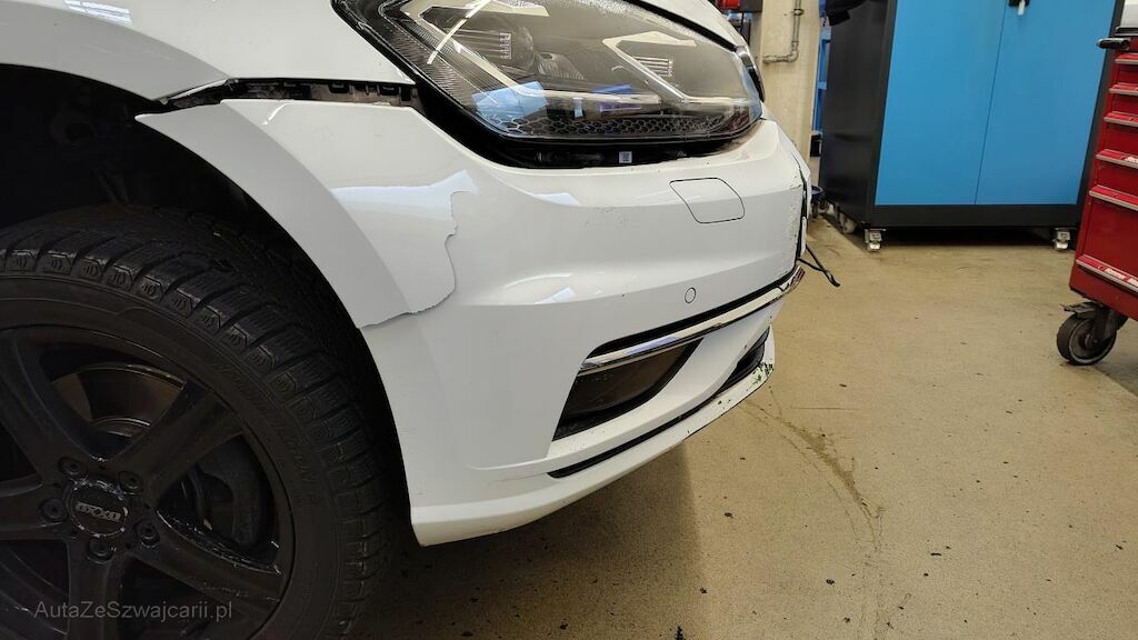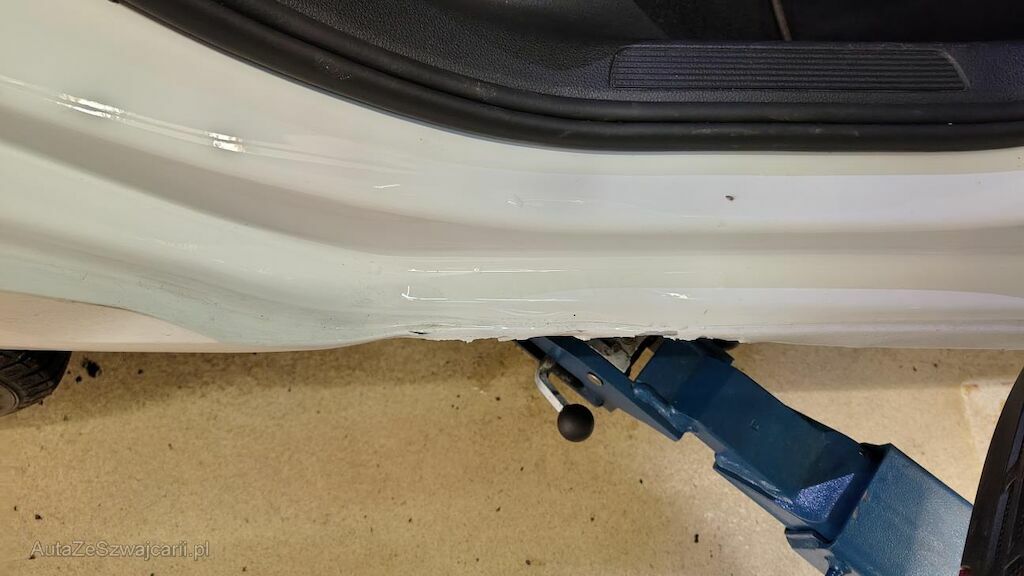 Stossstange vorne eingedellt, gerissen und zerkratzt. Zierleisten, Kühlergitter, Spoilerlippe unten und Kabelstrang an der Stossstange vorne beschädigt. Aggregateträger vorne eingedellt. Unterbodenverkleidung rechts beschädigt.Kraftstofftank beschädigt. Bodenblech und Leitungskanal rechts hinten eingedellt und zerkratzt. Kraftstoffleitungen beschädigt. Scheinwerfer rechts beschädigt. Kotflügel vorne rechts verschoben. Schweller rechts eingedrückt und zerkratzt. Türen hinten rechts eingedellt und zerkratzt. Vorschäden: Diverse Gebrauchsspuren usw., Delle im Kotflügel vorne rechts. Türe vorne rechts eingedellt mit Lackschaden. Steinschlag auf der Motorhaube. Lackschäden auf der Ladekante an der Stossstange hinten. Aussenspiegel links zerkratzt.