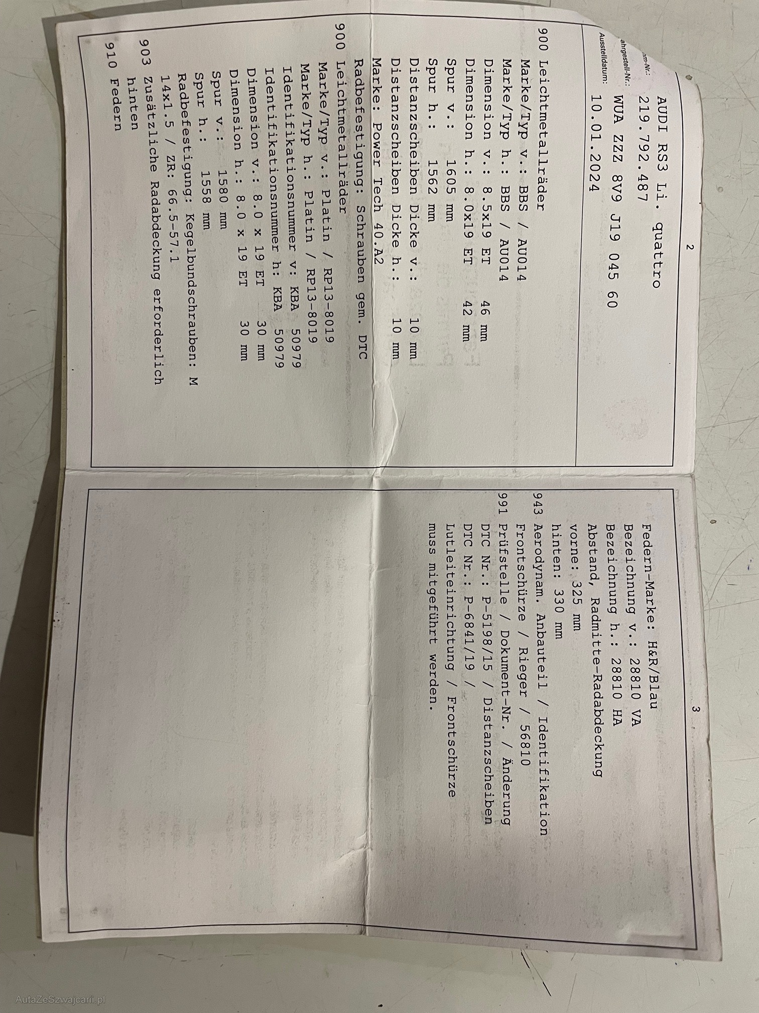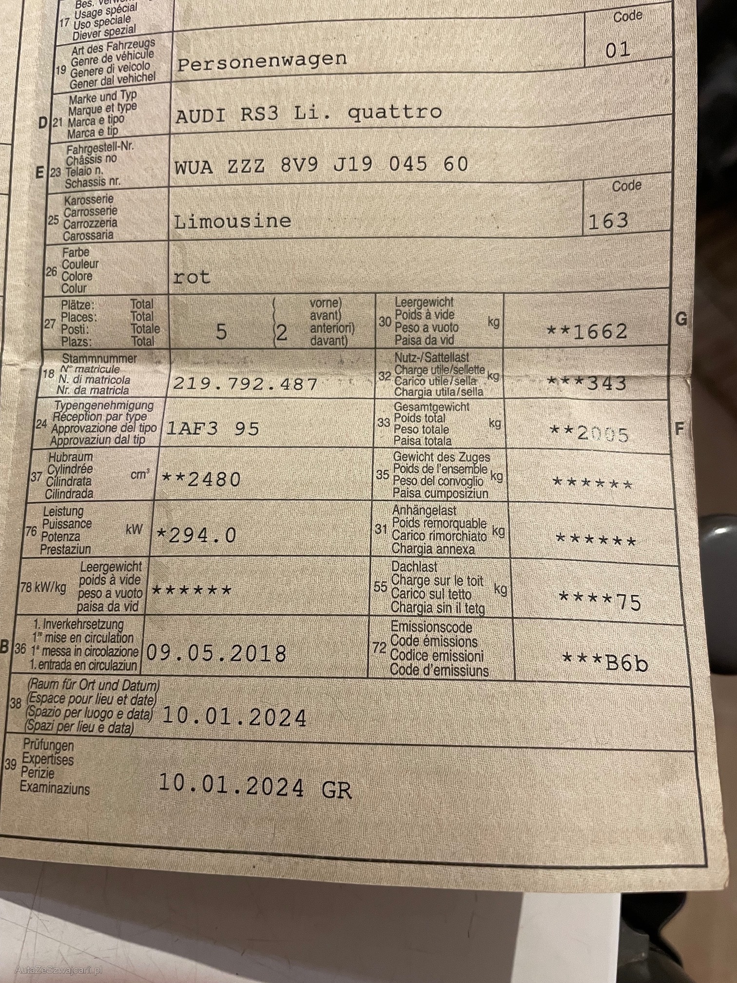 | VIN | WUA ZZZ 8V9 J19 045 60 |