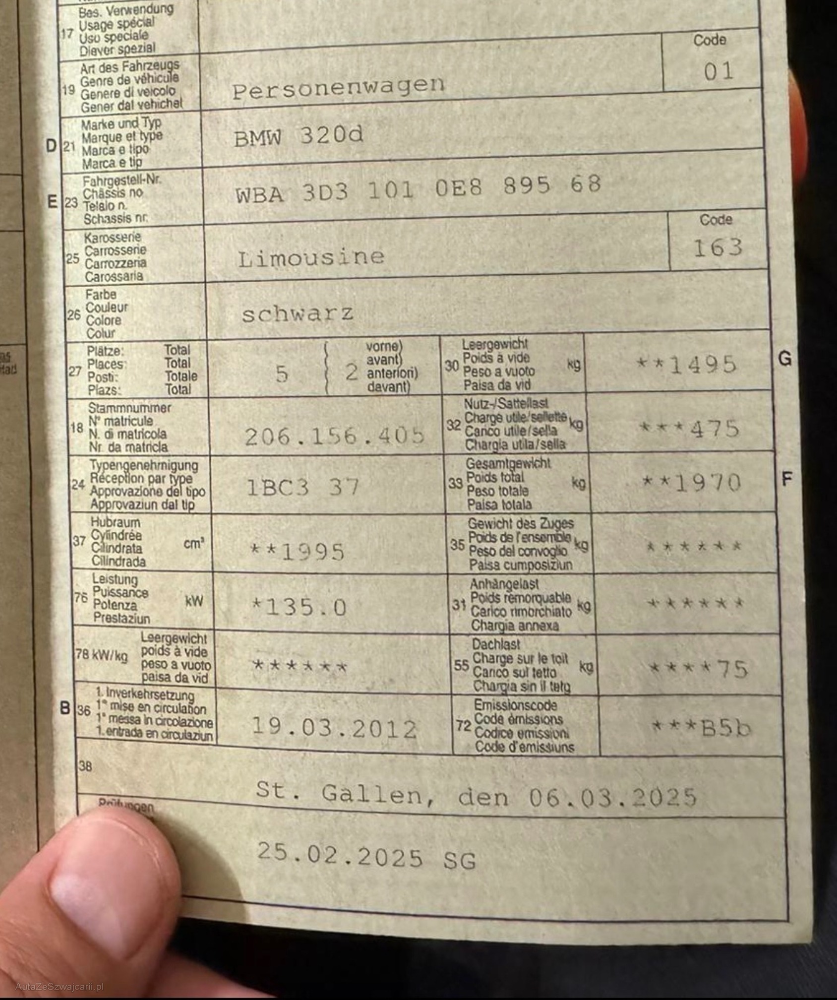 | Kommentar | Auto läuft einwandfrei! Digitales Serviceheft vorhanden (siehe Bilder) Service wurde regelmässig gemacht doch nicht eingetragen! Leichte Carrosseriemängel wie Seitenspiegel. Ohne Garantie, ab Platz! |