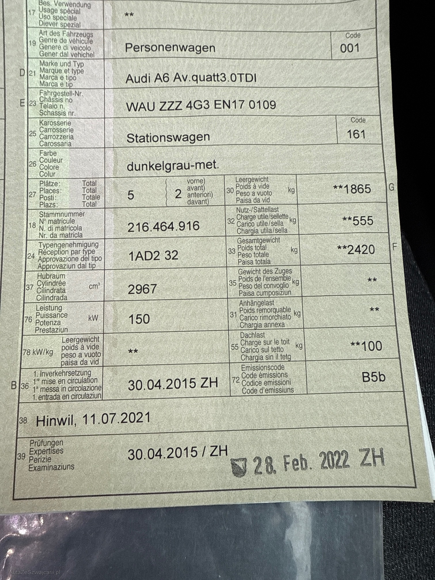 | Kommentar | Diverse kleine Gebrauchspuren, kleiner hick bei frontspoiler siehe Fotos, alle service bei amag |