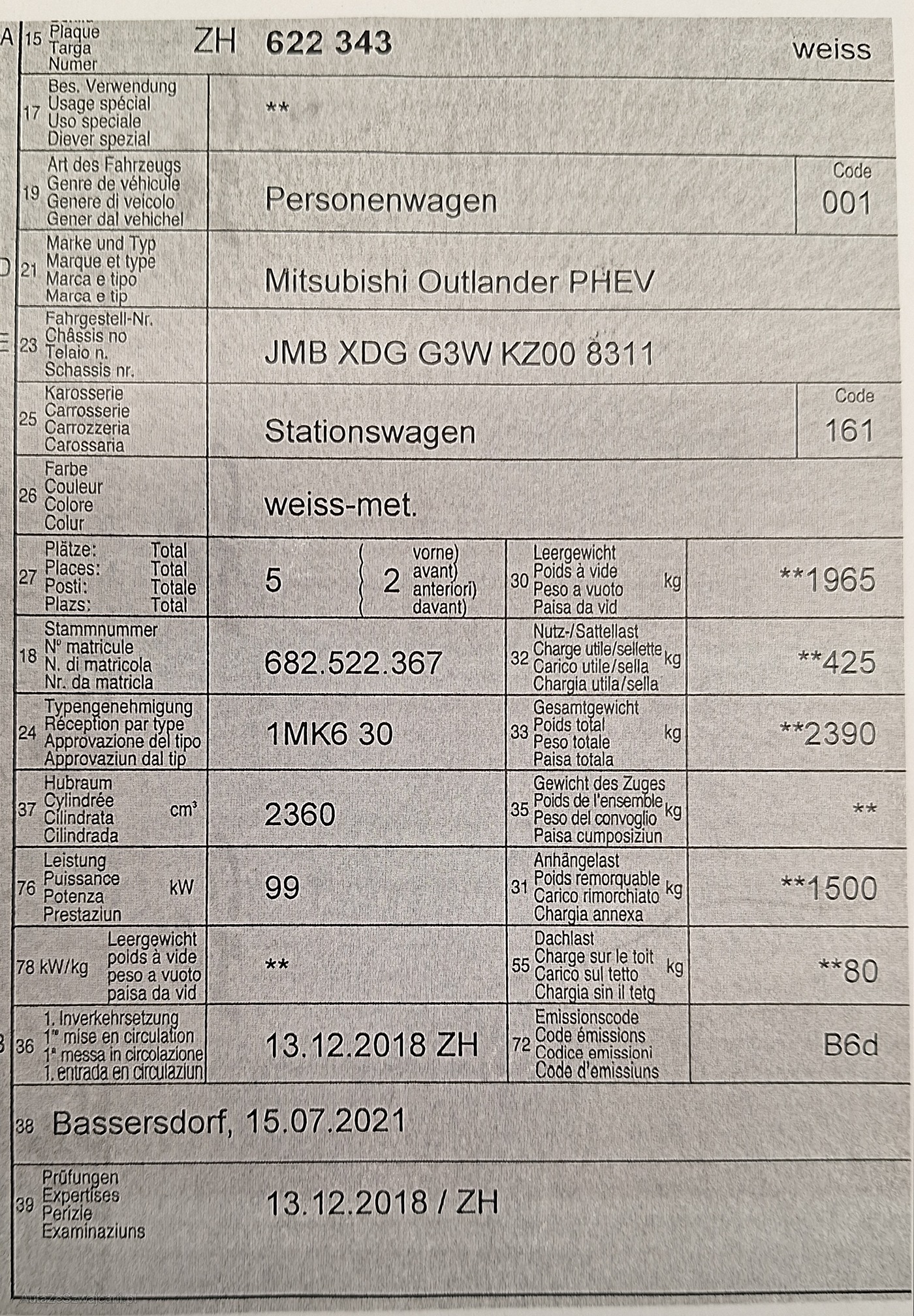 | Kommentar | -Türe vl 2 Dellen beim Türgriff und 1 Delle unten mitte (siehe Foto) -Heckdeckel Beule (siehe Foto) -Kratzer Stosstange vr unten (siehe Foto) -Kleine Delle Türe vr -Kleine Delle Seitenwand links -2 Ladekabel vorhanden -AHK Nachgerüstet |