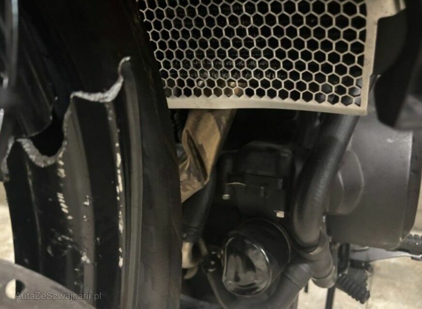 Beschädigte Frontverkleidung.