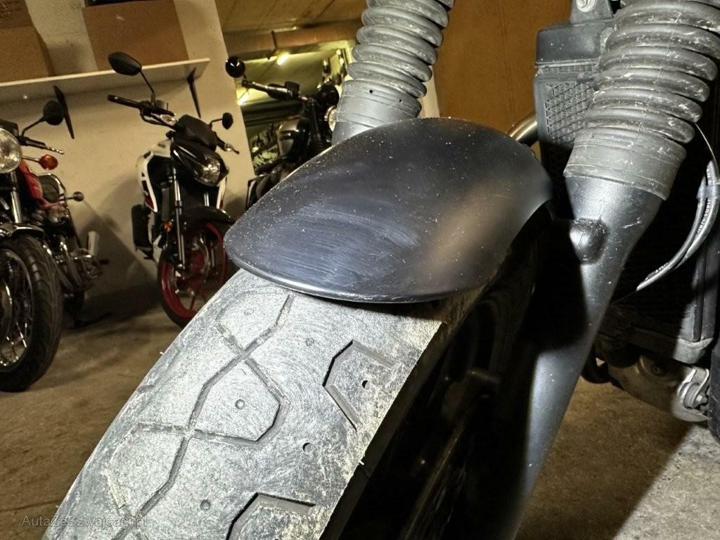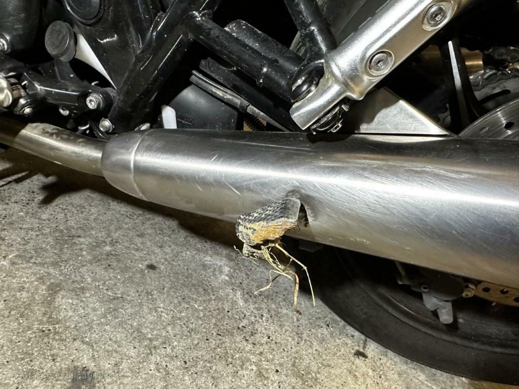 | Schadensbeschreibung | Anprall an der Fahrzeugseite links : Dabei wurde die Lampe, das Tachogehäuse, das Vorderradschutzblech, der Motordeckel, der Lenker, der Hauptständer, der Auspuff, der Tank, der Aussenspiegel, der Griff sowie diverse Anbauteile deformiert. Risiko Telegabel! |