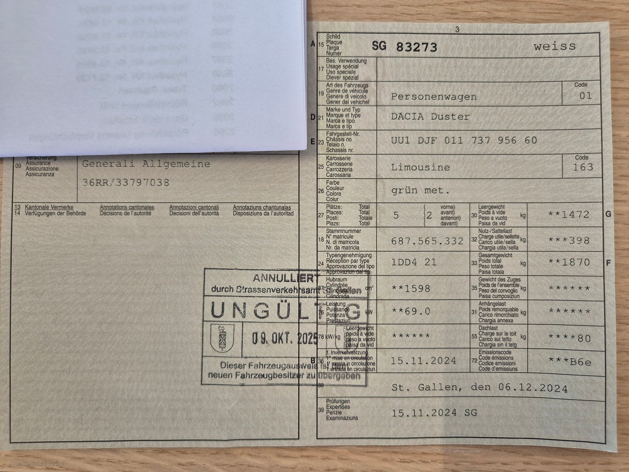| Kommentar | Leichte Parkdelle an der Fahrertür sichtbar Es können Kratzer und Dellen vorhanden sein, die auf Fotos nicht erkennbar sind. Fahrzeug kann darum vor Ort nach Absprache besichtigt werden. Nachverhandlungen werden nicht akzeptiert. Am Fahrzeug wurde kein Werkstatttest gemacht (Für sichtbare oder nicht sichtbare Mängel wird nicht gehaftet). Wir testen & kontrollieren nicht alle Funktionen vom Fahrzeug. Das Risiko liegt somit vollumfänglich beim Käufer. Nachdem der Höchstbietende den Zuschlag erhalten hat, gibt es keine Nachverhandlung, auch wenn nicht deklarierte Mängel zum Vorschein kommen sollten. Ab Platz ohne Garantie, Wandelung und Minderung werden weggebunden. |