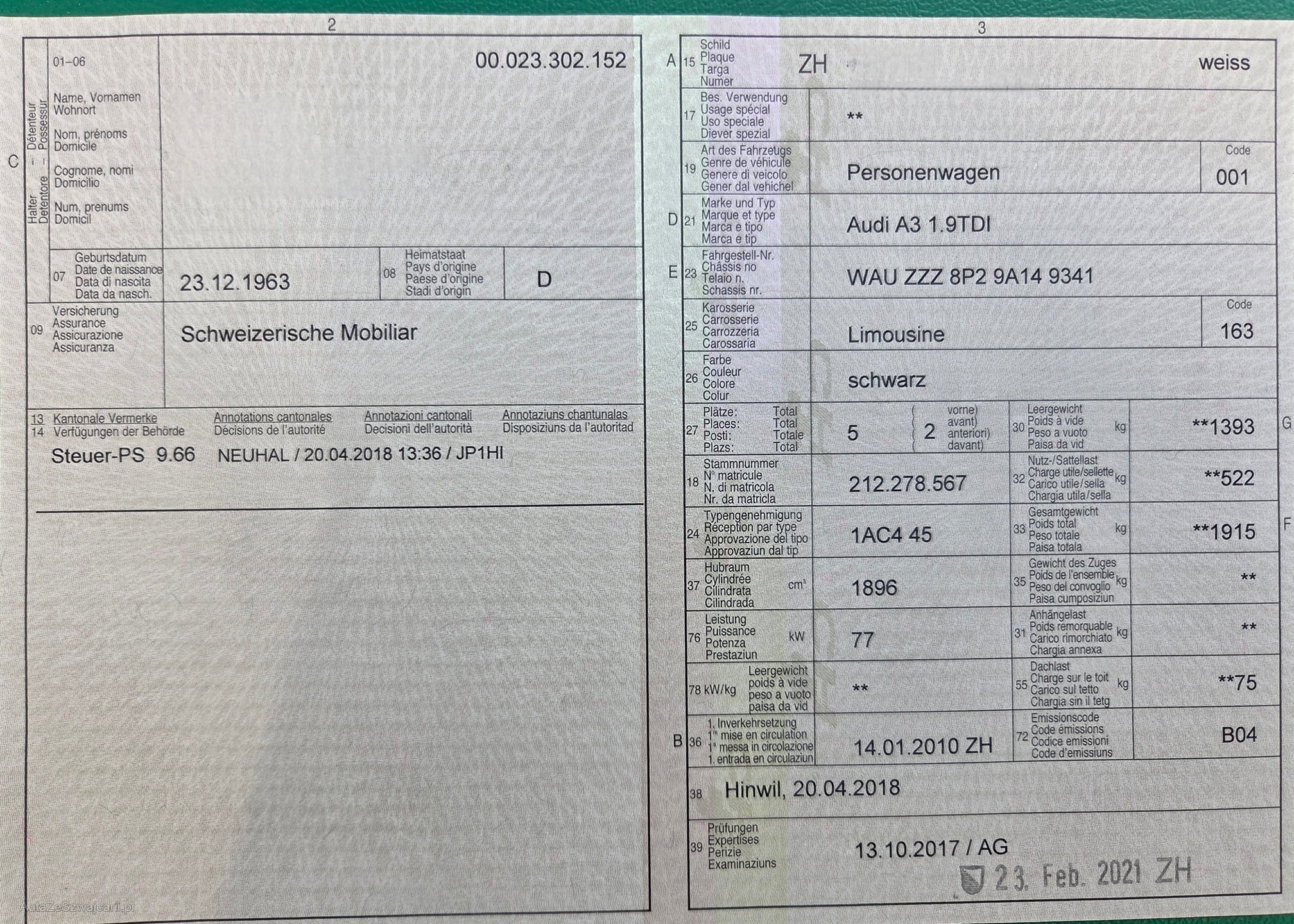 | Kommentar | Service 08. 2025, Viele kl. Karosserieschäden, Beule Heckdeckel, alle Türen und Stossfänger zerkratzt, Sitzabdeckung Beifahrersitz fehlt, siehe Fotos, kein Werkstatttest ausgeführt! Das Risiko liegt somit vollumfänglich beim Käufer. Um Missverständnisse zu vermeiden kann das Fahrzeug auf Voranmeldung besichtigt & getestet werden. Wird davon bewusst kein Gebrauch gemacht, liegt die Verantwortung beim Käufer. Nach Zuschlag, keine Nachverhandlungen möglich. Ab Platz ohne Garantie, Wandelung und Minderung werden wegbedungen. Abholung vom Fahrzeug spätestens 10 Tage nach dem Zuschlag. Spätere Abholungen können abgemacht werden, werden jedoch mit Fr. 8.- / Tag in Rechnung gestellt. |
