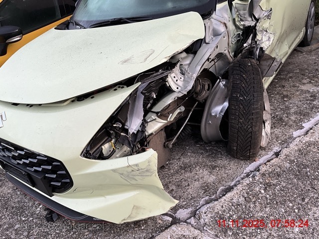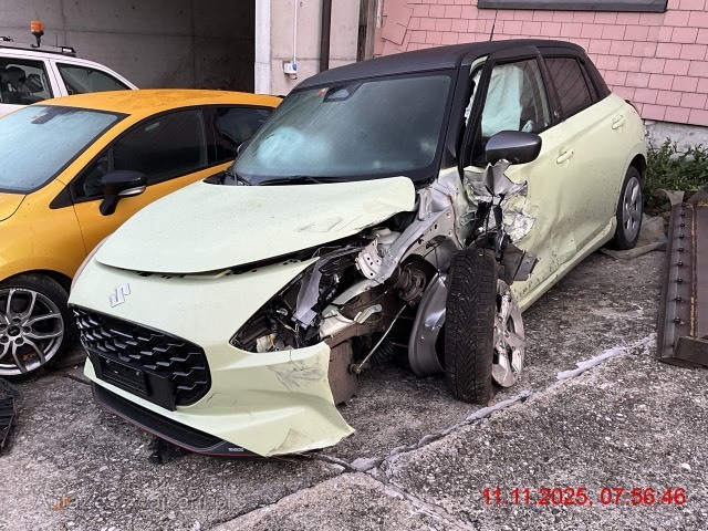 | Schadensbeschreibung | Stossfänger vorne, Motorhaube, Kühlergrill, Schlossträger, Kotflügel links, Radhaus innen links, Seitentür vorne links, Schweller links deformiert. Fahrwerk vorne links komplett nach hinten verschoben. Antriebswelle vorne links aus Getriebe gerissen. Fahrer-, Beifahrerairbag, Seitenairbag vorne links, Kopfairbag links ausgelöst. Gurtstraffer vorne links und rechts ausgelöst. Motor läuft noch. / Vorbestandene Schäden: Gebrauchsspuren |