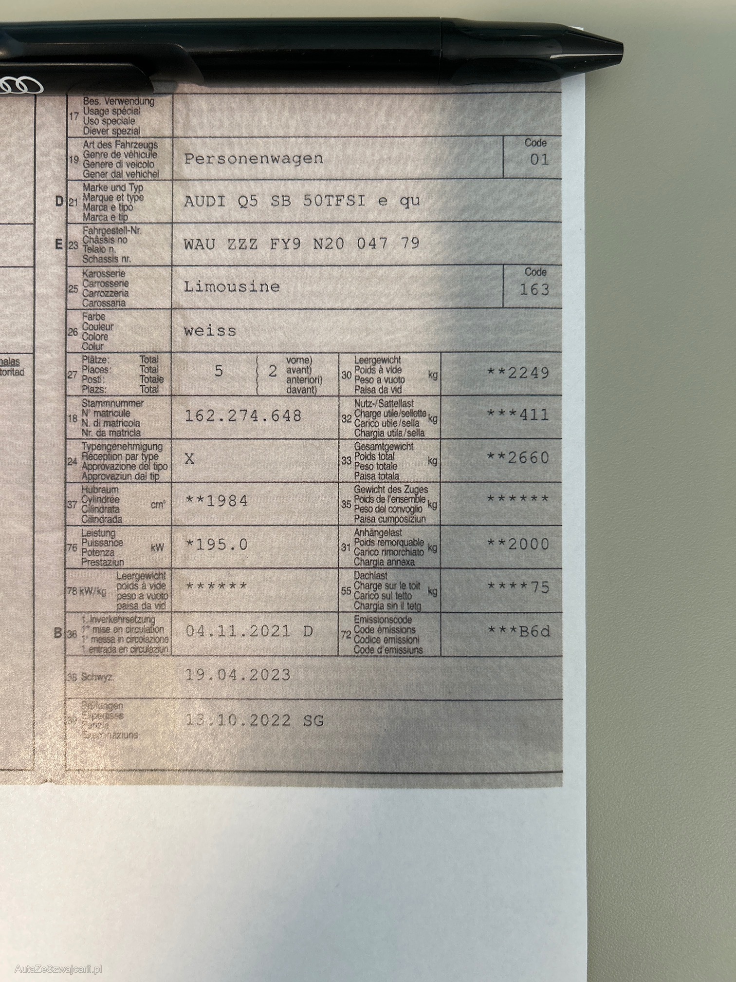 | Kommentar | Am Fahrzeug wurde kein Werkstatttest gemacht (Für sichtbare oder nicht sichtbare Mängel wird nicht gehaftet). Wir testen & kontrollieren nicht alle Funktionen des Fahrzeugs. Das Risiko liegt somit vollumfänglich beim Käufer. Ab Platz ohne Garantie, Wandelung und Minderung werden wegbedungen. |