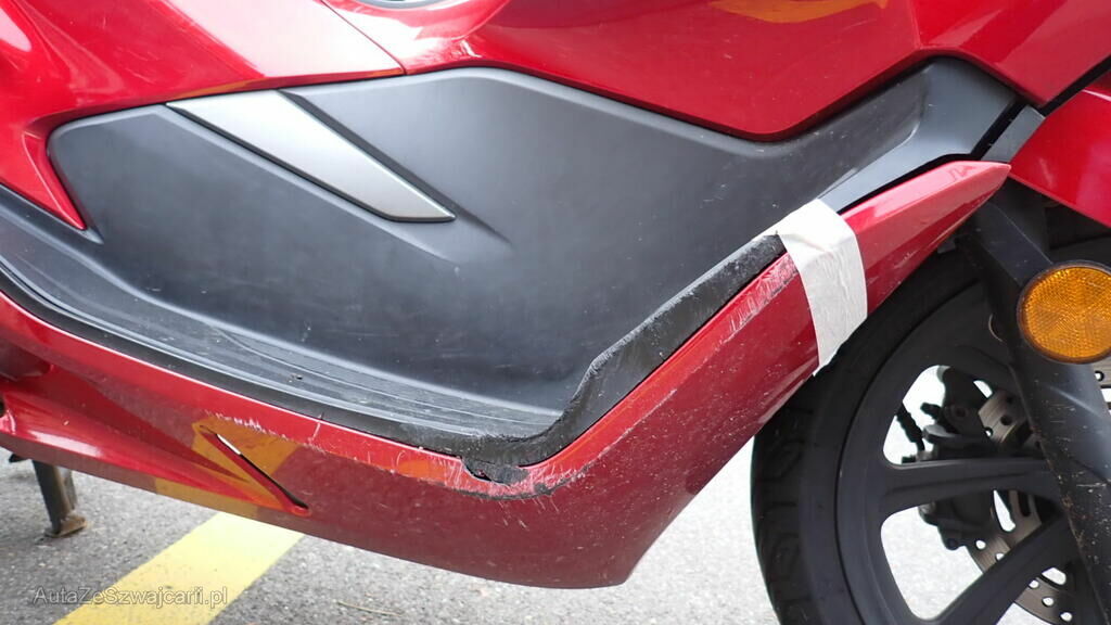 Carénages avant, phare avant, protection échappement, bulle, rétroviseur, levier de frein, tablier, bas de caisse et guidon.