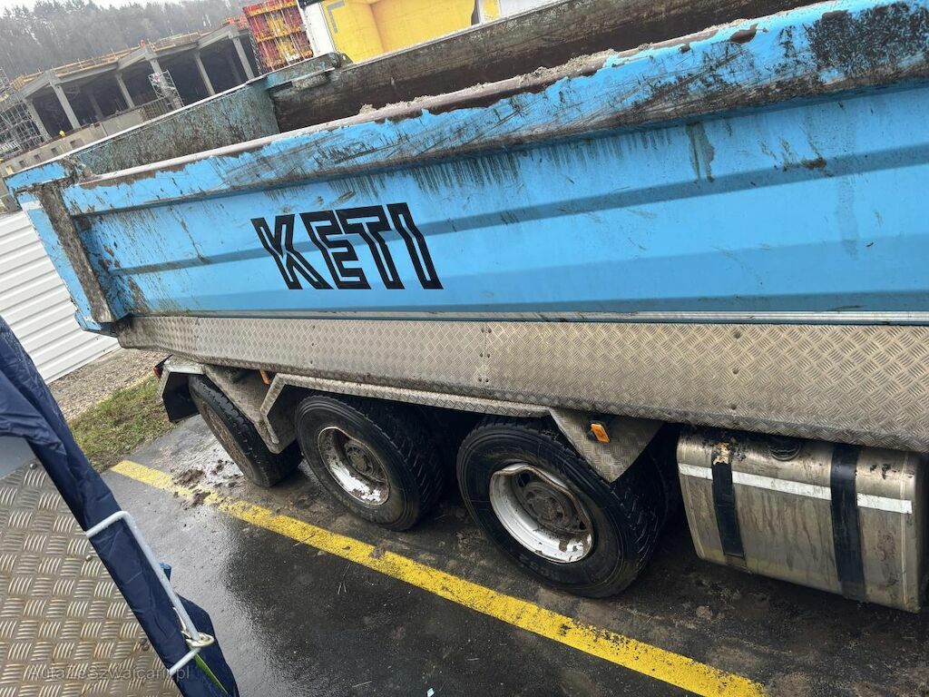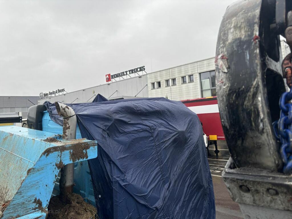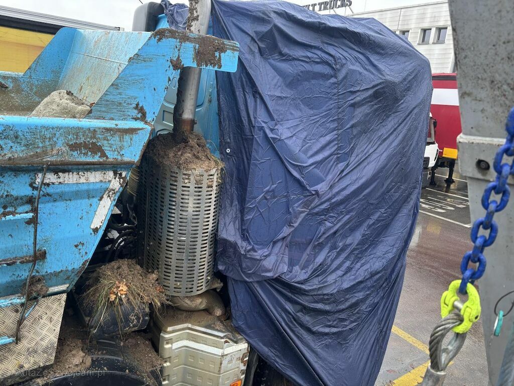 le camion s'est couché sur le côté droit , cabine, porte, intérieur déformés , essieu arrière directeur décalé 2 essieux moteur tapé , jantes pliées , échappement plié , protection garde boue endommagées , benne ? chassis vrillé