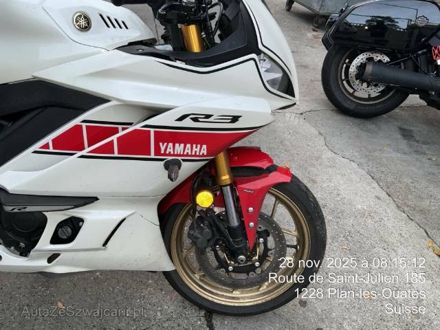| Schadensbeschreibung | Choc avant: Jante, fourche, radiateur, collecteur & échappement déformés, garde boue avant, tête de fourche & carénages avants cassés. Moteur ne démarre pas! |
