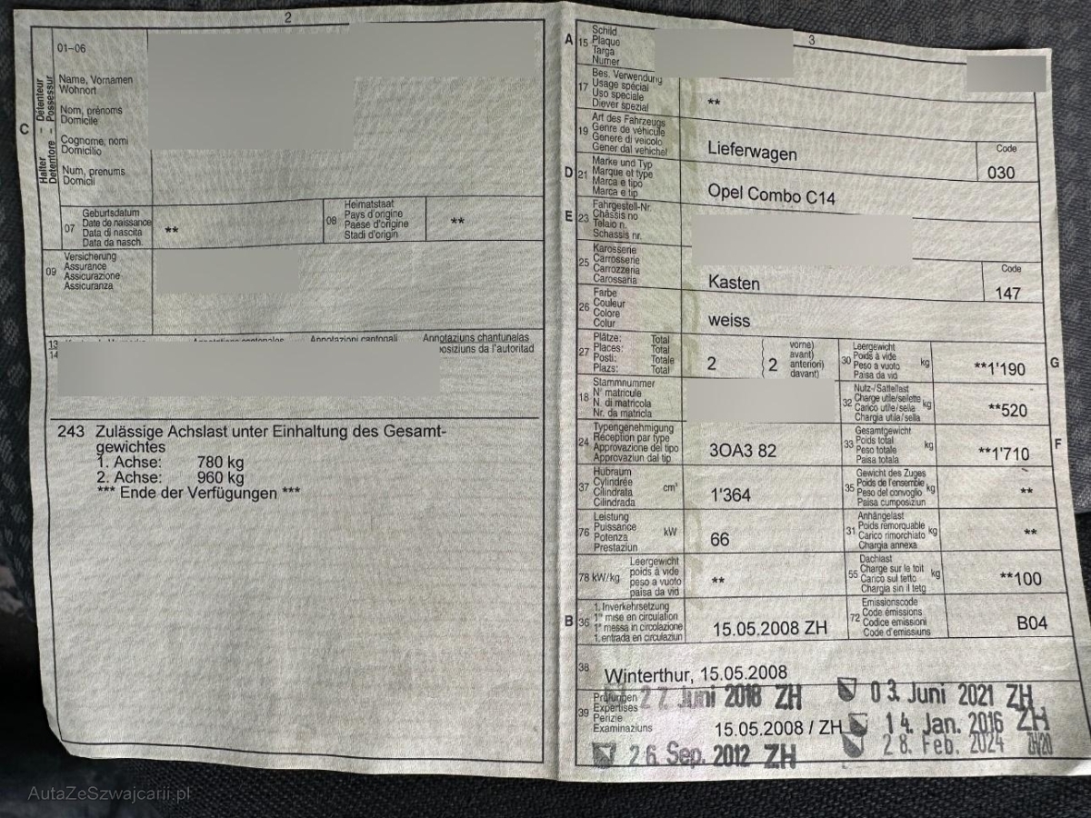 | Fahrzeugausweis | Vorhanden |