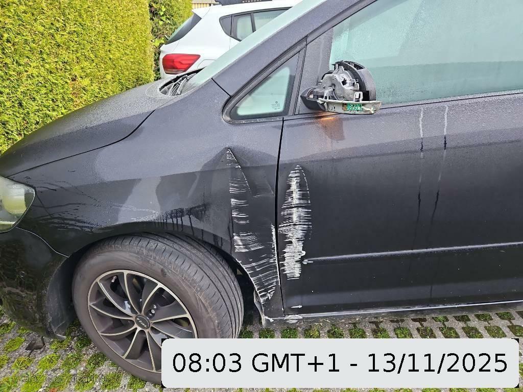 | Beschädigungen | A-Säule, Aussenspiegel links, Kotflügel links, Schweller links, Türe vorne links |